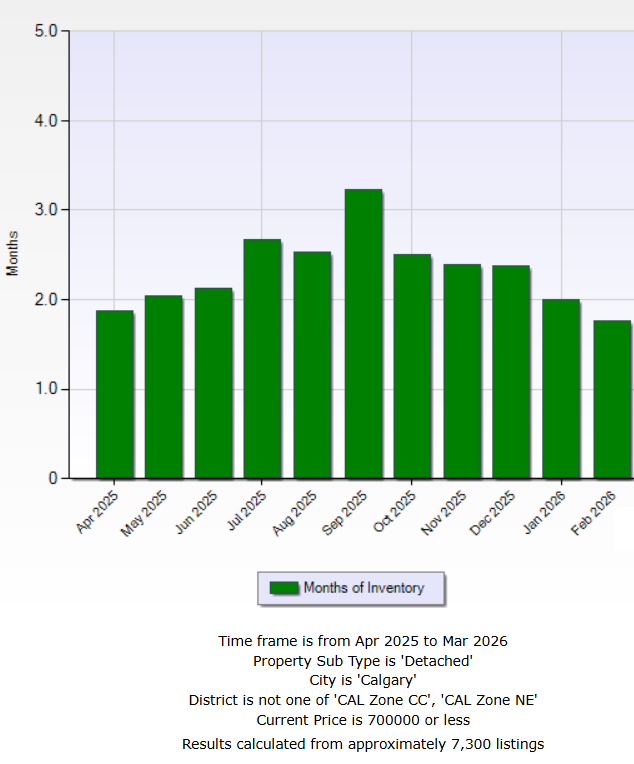 Here's the chart for months-of-inventory for detached homes under $700,000: