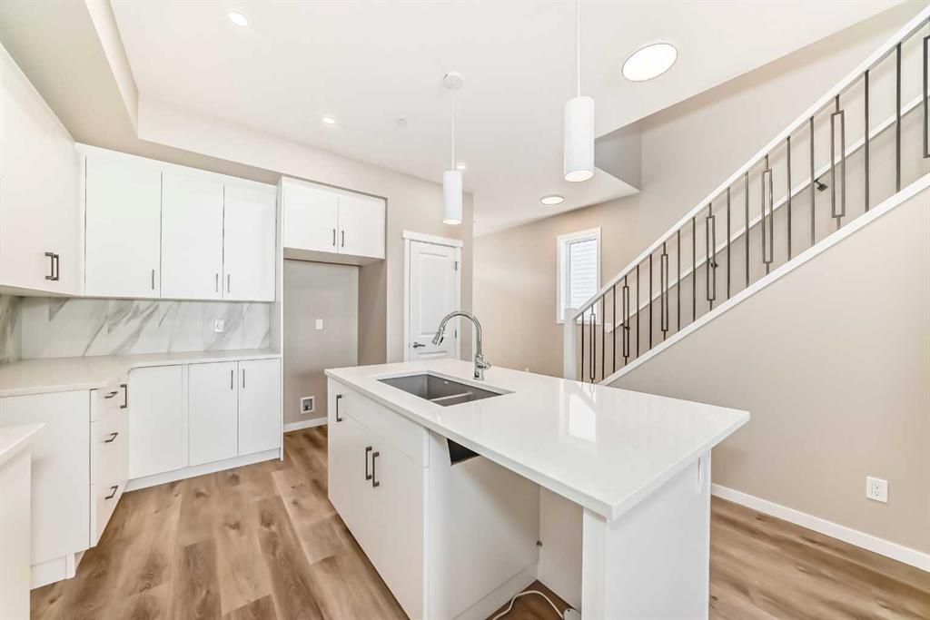 Don't Miss Out on This Incredible Opportunity! Looking for brand new but don’t want the wait? Be the first to live in this brand-new, exquisitely designed 3-bedroom home by Hopewell Residential, spanning nearly 1,400 square feet with a side entrance for a potential future basement suite (A secondary suite would be subject to approval and permitting by the city/municipality). This property features ample windows throughout and a west-facing backyard, offering abundant natural light and spacious living. As you enter, you'll be welcomed by a wide, open-to-below staircase with upgraded railings that span the entire stairwell, enhancing the sense of openness on the main floor. The main floor features luxurious vinyl plank flooring throughout, with a separate living and family room perfect for entertaining guests. The open floor plan includes a dedicated dining area that comfortably accommodates gatherings with friends and family or those holiday meals. The upgraded kitchen is a chef's dream, featuring quartz countertops, stainless appliances, and classic subway backsplash. The large island and ample cabinet and counter space provides plenty of room for the modern chef to prepare meals and entertain guests. There’s also a generous-sized pocket office on the main floor, the ideal setting for working from home or kids homework space. Upstairs, you'll find a spacious primary bedroom complete with a 4-piece en-suite bathroom with dual sinks and an oversized shower. Additionally, there are two good sized bedrooms, a laundry room, and another full bathroom. The side entrance provides options in the future for a basement suite (A secondary suite would be subject to approval and permitting by the city/municipality) providing the perfect spot for extended family or rental income. **This home also comes complete with full front and backyard landscaping, including sod, mulch on the side yards, and trees/shrubs in the front as per community guidelines. The backyard provides plenty of space to build a double garage in the future. Conveniently located, this home offers easy access to Stoney and Deerfoot Trails and all of Seton’s amenities including the South Health Campus just a short drive from home. Don't let this remarkable opportunity slip through your fingers. Discover the perfect blend of style, comfort, and functionality with The Benning by Hopewell Residential.