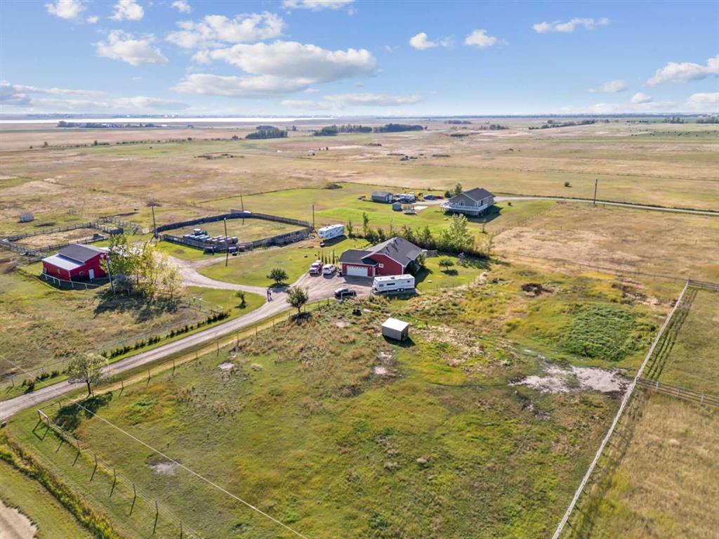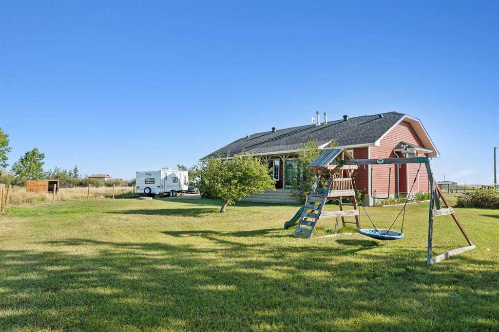 CHECK OUT the amazing AERIAL VIDEO of this property at this link: https://youtu.be/fjUYYL55fkQ. COME AND TAKE A LOOK AT WHAT COULD BE YOURS! THIS IS A FANTASTIC OPPORTUNITY TO HAVE YOUR OWN PIECE OF COUNTRY LIFE WITH CONVENIENCES CLOSE BY! With ~10 ACRES, you will have all of the land you need for your family to live and grow! As you drive onto the property, you will appreciate everything it has to offer! The beautiful home is situated so that you have both EAST AND WEST FACING DECKS to relax and have a coffee or watch a sunset with a glass of wine! The spacious BUNGALOW has lots of great features, such as 3 BEDROOMS on the main level, an OPEN KITCHEN with loads of cupboards and a LARGE PANTRY, with lots of counter space to prepare your favorite foods! The OPEN DINING area has plenty of room to share meals with family and friends. There is HUGE LIVING room, with ample space for everyone to spend time together making memories! The TWO SIDED GAS FIREPLACE adds a touch of coziness to this home, with access views from the kitchen and living room. From the living room, PATIO DOORS lead you to your back deck, ready for you to watch the kids playing in the yard! The PRIMARY bedroom is very large, with DOUBLE CLOSETS and a 3 piece ensuite. Downstairs, you will find a great PLAY AREA for lots of fun and games! There is also ANOTHER 3 piece bathroom, and a generous sized GUEST SPACE with wall to wall closets! The laundry is conveniently located here as well, along with a huge STORAGE room big enough for everything to stay organized! There is a large OFFICE, or you can use as a FLEX SPACE, whatever you want it to be! You will enjoy parking in the DOUBLE ATTACHED garage, which is HEATED and INSULATED, and comes complete with a big WORKBENCH, loads of convenient shelving, AND a sink for washing up! Plenty of additional parking just outside as well! Now come and check out the outdoor part of this property! The huge 47 x 43 foot BARN comes with 5 STALLS, an office and/or tack room, hay storage AND front and back doors for easy access and drive though ability. Outside there are 4 horse PADDOCKS and PASTURE space, with many of the fences being recently replaced. The OUTDOOR RIDING ARENA is ready to go, complete with NIGHT LIGHTING! There are also 2 automatic waterers! The home has NEW SIDING in 2022, along with NEW ROOF and EAVES on both the home and the barn at the same time. This home had all NEW WINDOWS in 2011. The septic field was NEW in 2024 and has had a Septic Feasibility Report already done for you! Nothing for you to have to do but move in and enjoy! With Langdon just a short 5 minute drive away, you have a great selection of stores, restaurants, pubs, cafes and more - all of the services you need! It's easy access to major shopping in Calgary in just 15 minutes, or to downtown Calgary in 30 minutes! You can also head into Strathmore in 15 minutes for even more handy stores and activities! THIS IS THE LIFE YOU HAVE BEEN LOOKING FOR! COME AND GET IT!
