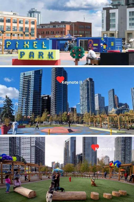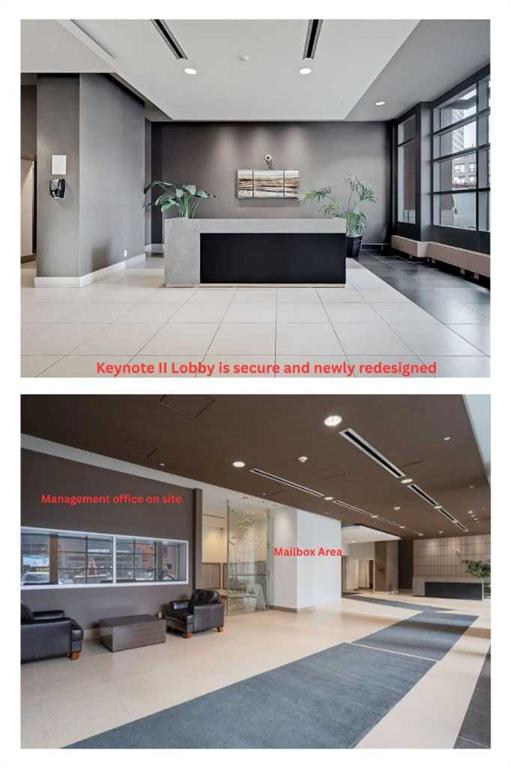 This air-conditioned complex has keyless main entry and a newly installed high security system. Keynote 2 boasts an array of exceptional amenities that cater to an active and social lifestyle. Stay fit in one of the 2 the state-of-the-art fitness centers or unwind in the owner's lounge complete with a large TV, pool table, kitchen and wet bar. Furnished guest suites, 24-hour security with surveillance cameras, and secured elevator access. The building also features a Plus-15 rooftop patio with outdoor space and BBQs, perfect for summer gatherings and relaxing with friends. Residents enjoy the convenience of full-time onsite management, secured elevator access, a guest room for visiting friends and family, two bike rooms.
