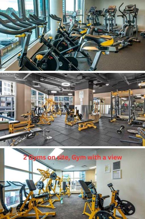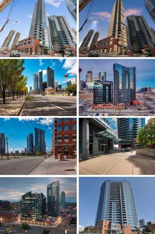 This executive upgraded unit has the best PARKING on P1 level which will save 20-30 minutes every day to get to/from parkade while saving your car longevity not going over the parkade speed bumps and same level titled oversized storage. Unit offers exceptional privacy and tranquility compared to other buildings in downtown thanks to its ALL-CONCRETE construction, including shared walls. Its unique ALL-GLASS EXTERIOR sets it apart, making it a standout building in Calgary's skyline. The OPEN-CONCEPT LAYOUT is designed for comfort and style, this unit boasts 9' ceiling with WRAP AROUND FULL FLOOR TO CEILING WINDOWS with BLINDS at your fingertip to close/open at your convenience and enjoy spectacular views of Calgary Tower. It is well planned one bedroom walk-in/walk through closet, entrance/exit from both bedroom and bathroom, not like any other layouts and one full bath, ceiling-height kitchen with European cabinetry, GRANITE counter-tops, center island, engineered hardwood floors and “Samsung” stainless appliances. Enjoy the ease of in-suite laundry and the comfort of central AIR CONDITIONING, ensuring a perfect indoor climate year-round.