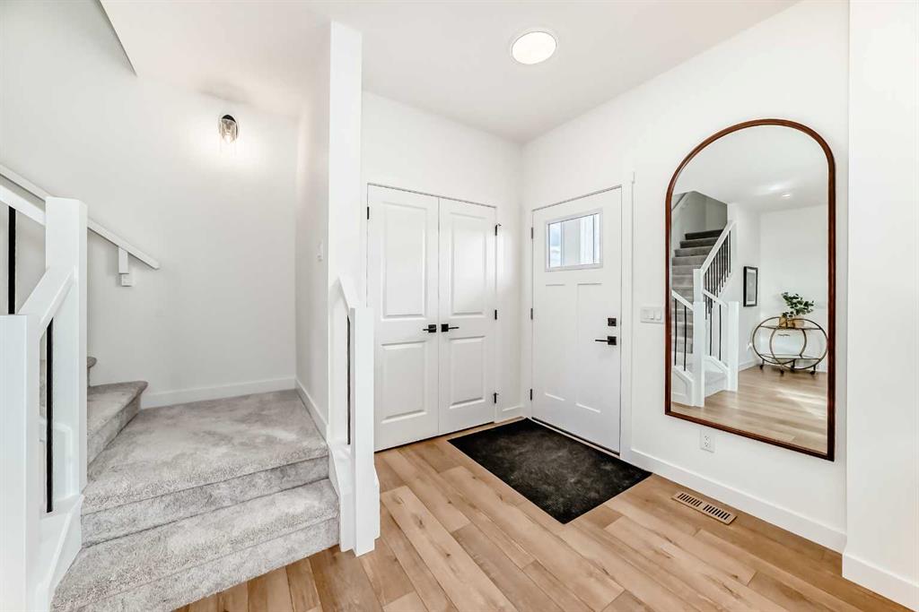 As you step through the front door, you're welcomed into a charming foyer that sets the tone for the home’s warm and open layout. To your left, a comfortable great room offers the perfect space to relax or entertain, with natural flow into the kitchen and rear dining nook. Whether you're cooking up a weeknight dinner or gathering with friends, the open-concept design keeps everyone connected. At the back of the main floor, a two-piece bathroom and convenient storage space add practical touches that make daily living easier.