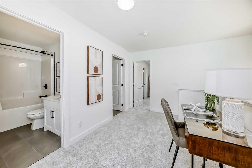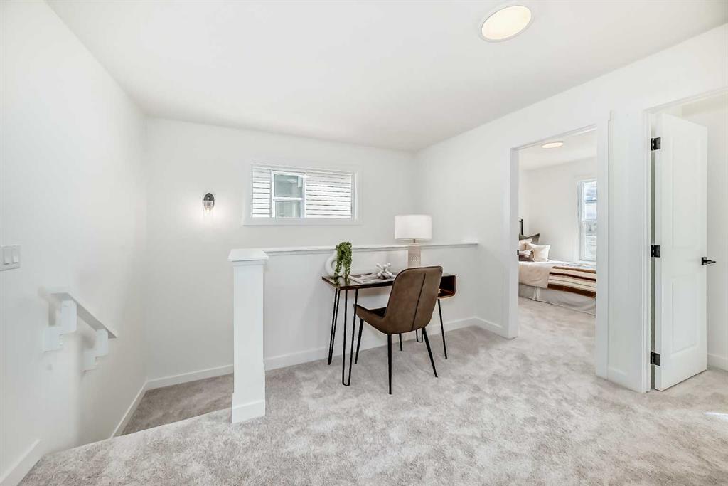 Upstairs, the thoughtful layout continues with a flex space at the top of the stairs, ideal for a cozy reading corner, a homework station, or even a small office setup. The primary bedroom is tucked privately at one end, complete with a four-piece ensuite and a walk-in closet, offering a peaceful retreat from the rest of the home. Two additional bedrooms sit at the other end of the floor and share their own four-piece bathroom, with a dedicated laundry room placed right between them for added convenience and efficiency.