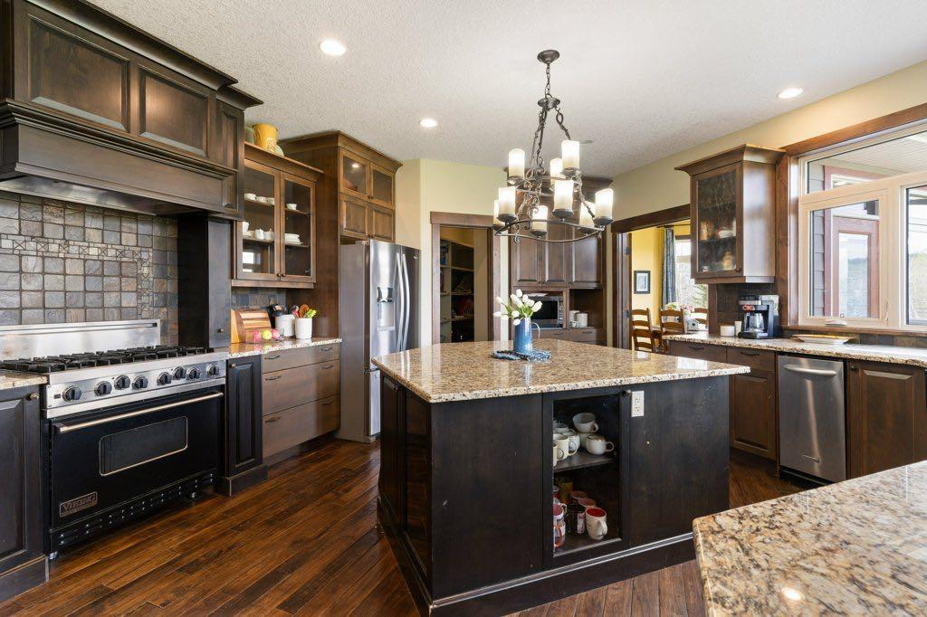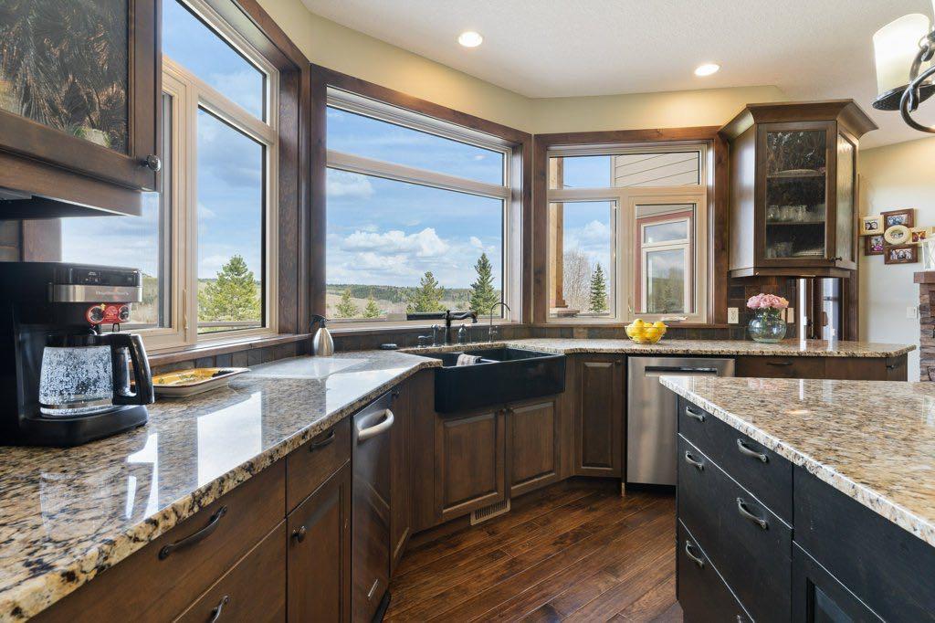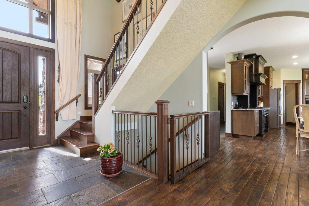 Nestled in the prestigious Priddis Creek Estates, this exceptional timber frame-style, walk-out bungalow offers the perfect blend of rustic charm and modern luxury. As you approach the residence, you'll immediately note the striking architectural details and thoughtful design that harmonizes with the surrounding natural landscape.