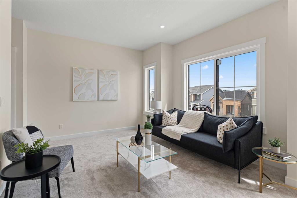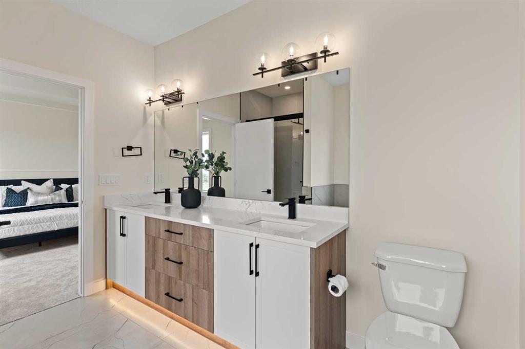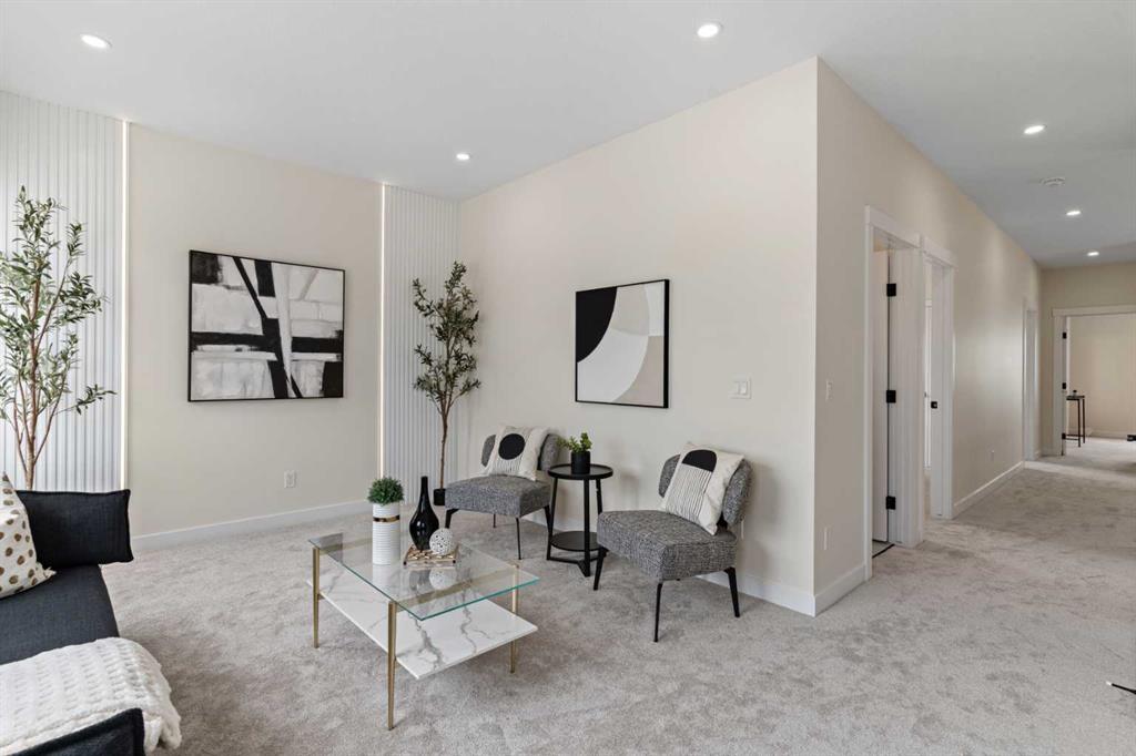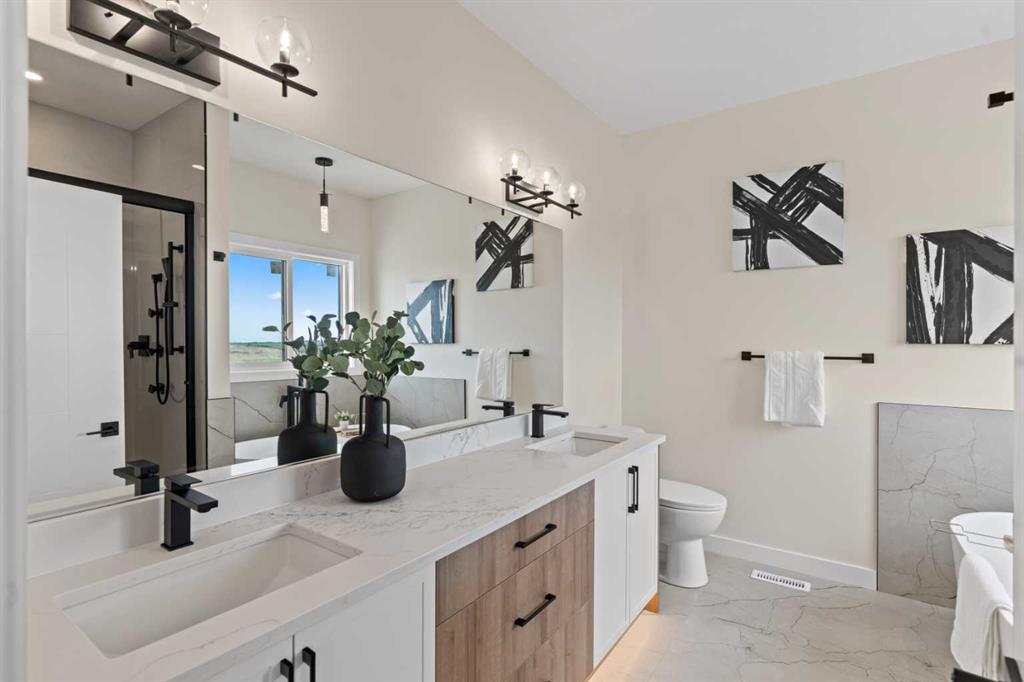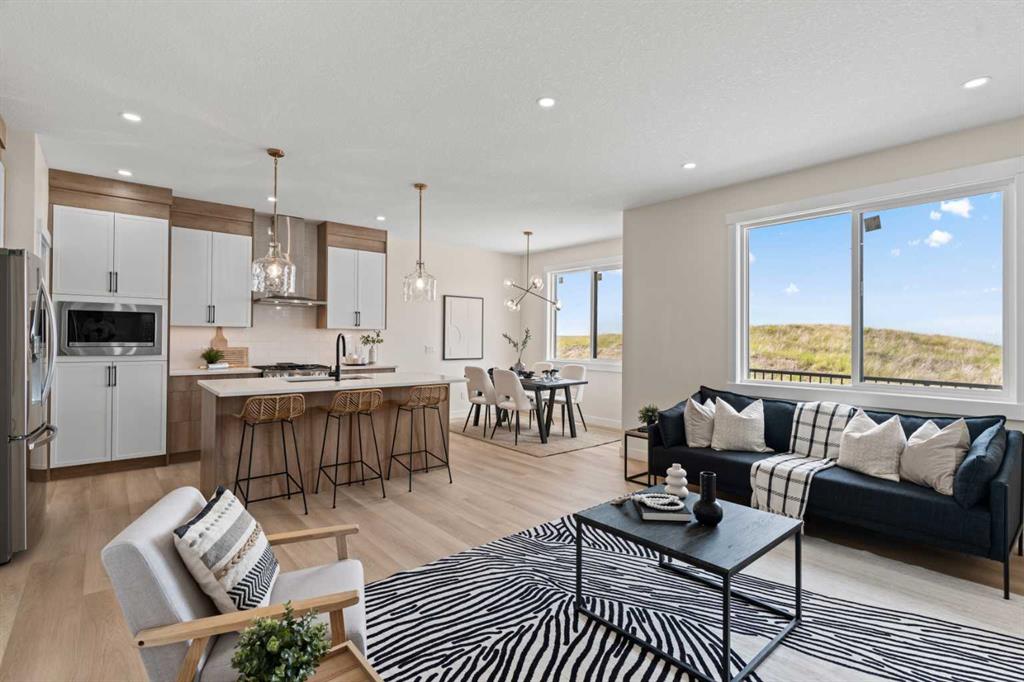 Welcome to our latest Exquisite SHOWHOME in the town of Crossfield. Just 10 minutes north of Airdrie, 25 minutes from Calgary and 3 minutes off highway 2. This 2050sqft heavily upgraded home consists of 3 bedrooms, 2.5 bathrooms with bespoke finishings such as maple wood detail, shaker with plywood cabinet boxes, black exterior dual pane windows, high end lighting, montigo natural gas fireplace feature, quartz countertops, upgraded black plumbing fixtures with freestanding tub, upgraded black hardware, wide plank Lvp flooring with a drywalled/insulated garage. Exterior also includes beautiful stucco/stone finishes. Full finishes can be provided upon request. Additional features include a large WALKOUT lot, 9FT CEILINGS on all floors, Open concept design, separate entrance, completed landscaping, basement roughed in with plans included. Spend sunny afternoons in the towns parks and playgrounds such as Veterans peace park or checkout the Crossfield Farmers market, the annual demolition Derby, the Rodeo grounds. This rapidly growing town also has amenities such K-12 schools such as Crossfield elementary school and W.G. Murdoch School, which are just short walk away! Find your forever home in this beautiful serene town with connectivity and affordable prices, you'll wonder why you didn't move sooner! Home is almost complete with final finishes/touchups and exterior landscaping remaining.