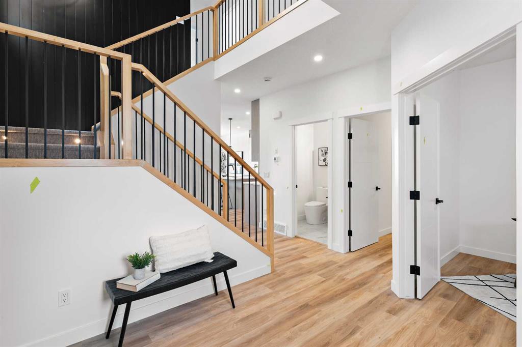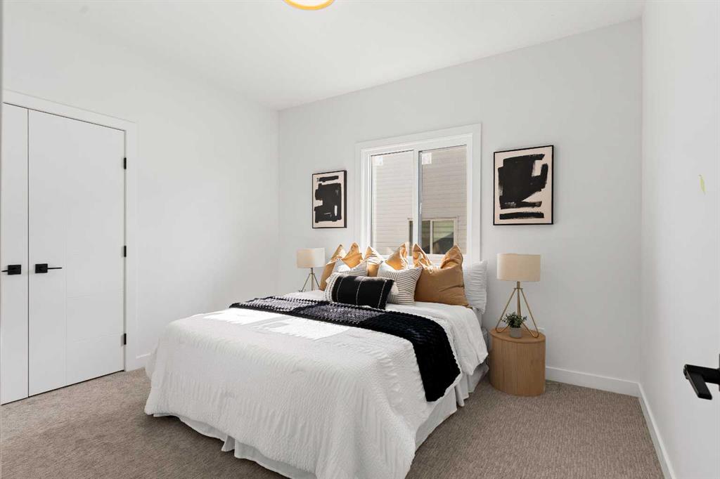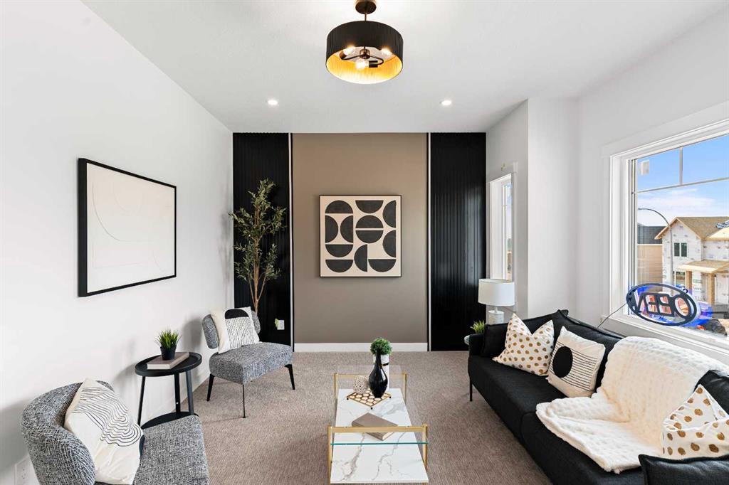 The residence features 3 spacious bedrooms and 2.5 elegantly designed bathrooms, highlighted by exquisite finishes such as stunning Maple details, slim shaker-style cabinetry with plywood boxes, sleek black exterior dual-pane windows, high-end lighting, and durable wide plank LVP flooring. We offer the flexibility to provide full finishes upon request or customize them to your individual taste. The main floor boasts an open concept design/open to below that seamlessly connects the kitchen, dining nook, and great room, ideal for modern living and entertaining. The kitchen features a large island with quartz countertops and upgraded lighting fixtures, creating a stylish and functional space. A cozy montigo gas fireplace adds warmth and charm to the great room. The main floor also includes a convenient spice pantry, a study room, a mudroom, and 9-foot ceilings that enhance the feeling of spaciousness. Large windows flood the space with natural light, enhancing the airy atmosphere. Outside, you'll find a triple-car detached garage, a private front deck, and acrylic stucco throughout the exterior with stone . On the second floor, enjoy the grandeur of 9-foot ceilings throughout, including in the spacious bonus room with an open-to-below concept that adds to the home’s luxurious feel. The master suite features a 5-piece ensuite and a generous walk-in closet, while the second bedroom includes its own walk-in closet. The third bedroom, along with an upper-floor laundry room, provides additional convenience. Each bedroom is enhanced with elegant tray ceilings, adding a touch of sophistication. The undeveloped basement offers a wealth of potential, featuring rough-ins and a side entrance. It can be customized based on your preferences, allowing you to tailor the space to suit your needs.