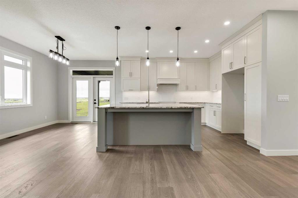 Unwind in Style and Comfort! Conveniently located just east of Okotoks and south of Calgary come and enjoy the years to come in this well-built designed to perfection 2001 sq. ft. bungalow on 4.30 acres. The main floor boasts an open concept filled with east views providing a nice flow of natural light, the warmth and coziness of a Napoleon gas fireplace flanked with built-in shelving, 9 ft. ceilings enhancing an airy atmosphere and offers ample space to comfortably accommodate large family gatherings. The kitchen is a chef’s delight, featuring timeless and natural beauty granite countertops, custom floor-to-ceiling kitchen cabinetry with remote under mounted lighting, hidden microwave shelf, island for seating, gun battle grey dual sink, and room for future dishwasher. The pantry cabinet offers pull out shelves for easy access. Options for electric or gas stove. The main level includes 3 bedrooms, including your bright & spacious & luxurious primary bedroom featuring an upscale walk-in closet with built-ins with a touch of country a barn door, an elegant 5-piece ensuite highlighted with a deep soaking stand-alone tub, shower, and double vanities, also on main offers 4-piece and a 2-piece bathroom and main floor laundry at the back entrance. The basement features a free-span steel beam, no exposed posts, it lends itself to being an open canvas for development with 9' ceilings and large windows. Oversize double attached garage with 13' ceiling height, insulated, & cement floor, nice window finishing, doggy house under the inside garage upscale entrance to the house.. Landscape will be finished to “topsoil”, 14’ x 34’ east deck pilings are installed for future development. Other features include double vapor exterior, continuous hot water with circulation pump, exterior soffit lights, cement entrance steps, sidewalks, and hardy board exterior highlighted with stone accent. Surround by covered sunrise and sunset decks to enjoy anytime of your day. All of this is located in a cul-de-sac subdivision and quick access to all amenities one needs, and to hwy 2 for the commuter in your family and minutes from South Campus Hospital or High River Hospital.