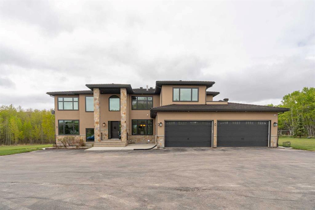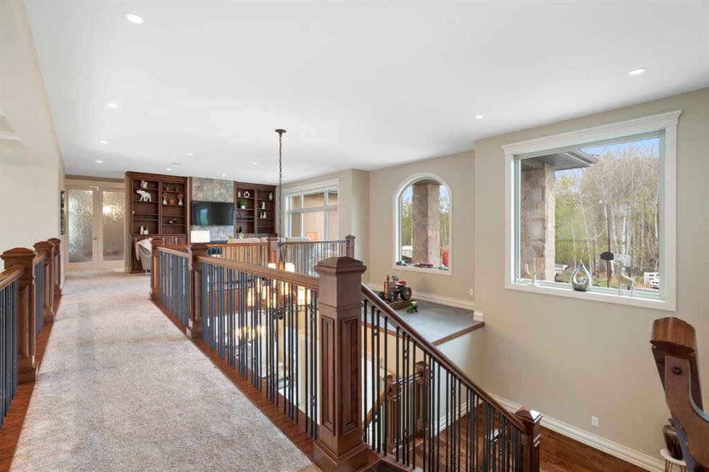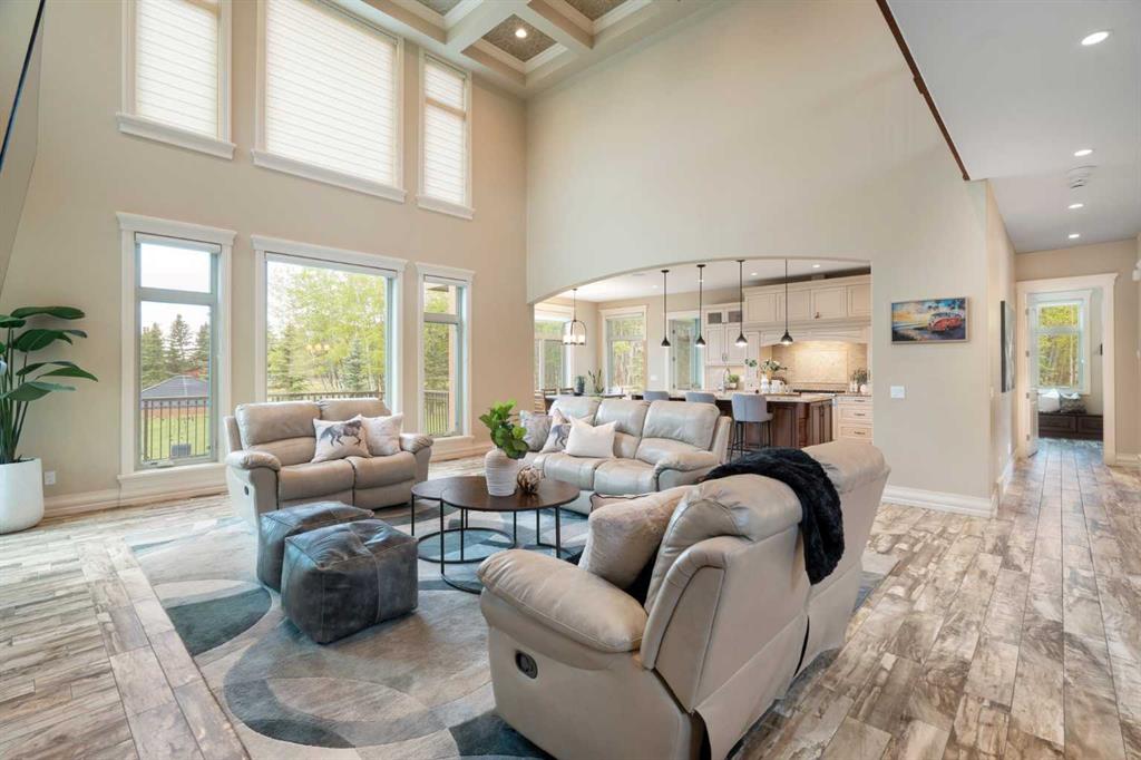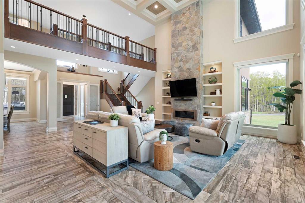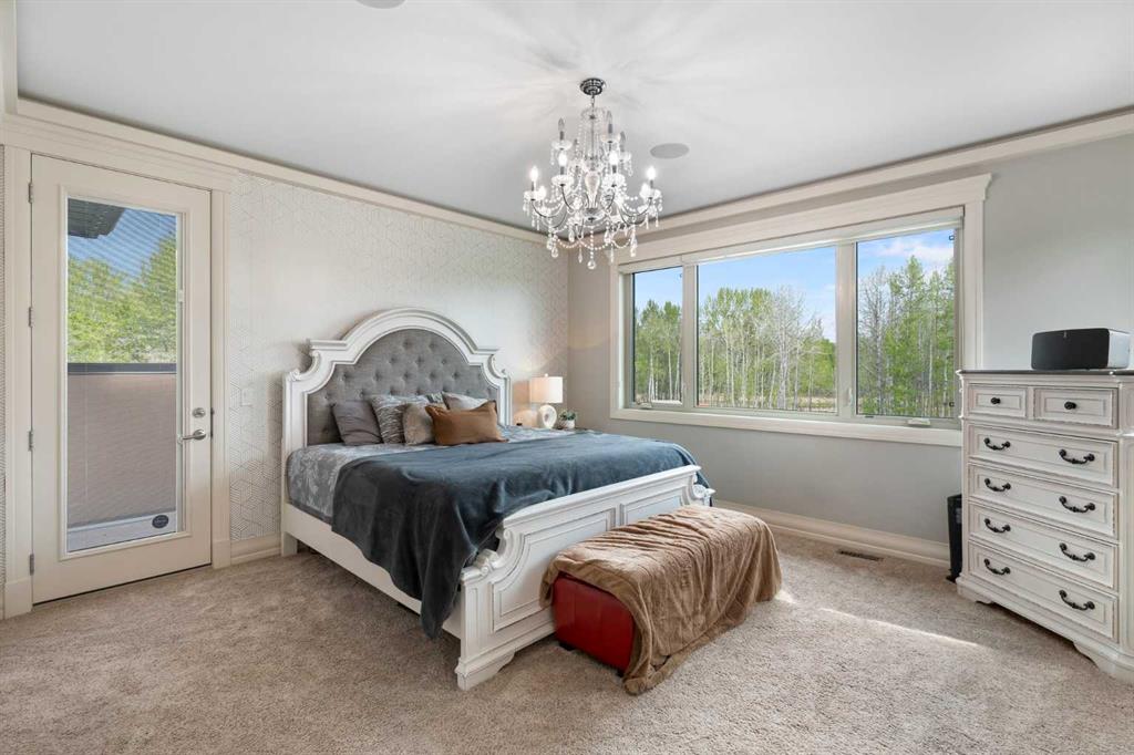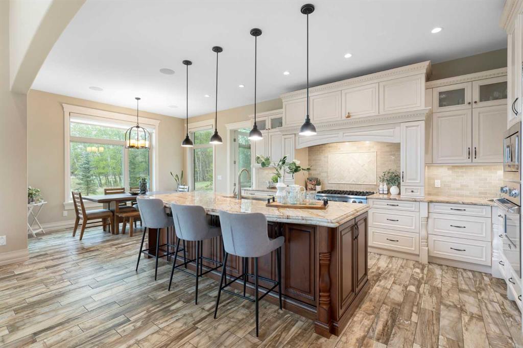 An Exquisite 4.5 acre estate in prestigious Bearspaw! Tucked in behind 12 Mile Coulee on BEARSPAW VIEW, this lot is as close to the city as you get while still enjoying the pinnacle of quiet country living. This extraordinary 2016 custom-built luxury home is set on a beautifully treed lot with a very usable yard for family fun and games. Privately gated with a winding tree-lined driveway, this magnificent residence is beautifully set back in the site. Quality is immediately apparent on the exterior with exposed aggregate pads and stairs, real stone cladding, a RUBBER ROOF, and GEMSTONE lighting! The floor plan of this home blends functionality and luxury through its high end materials, and amazing layout! The floorplan design allows for 6 of the 7 BEDROOMS to be serviced with ensuite washrooms providing luxury to every family member and guest. The homes flexibility is showcased by having the equivalent of 3 PRIMARY BEDROOMS - one on each level of the home! The custom home itself showcases exquisite flooring, beautiful materials and thoughtfully curated lighting throughout.