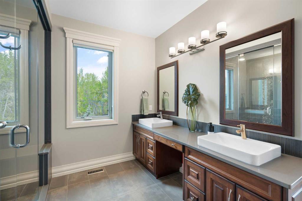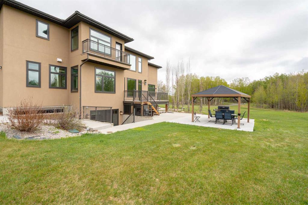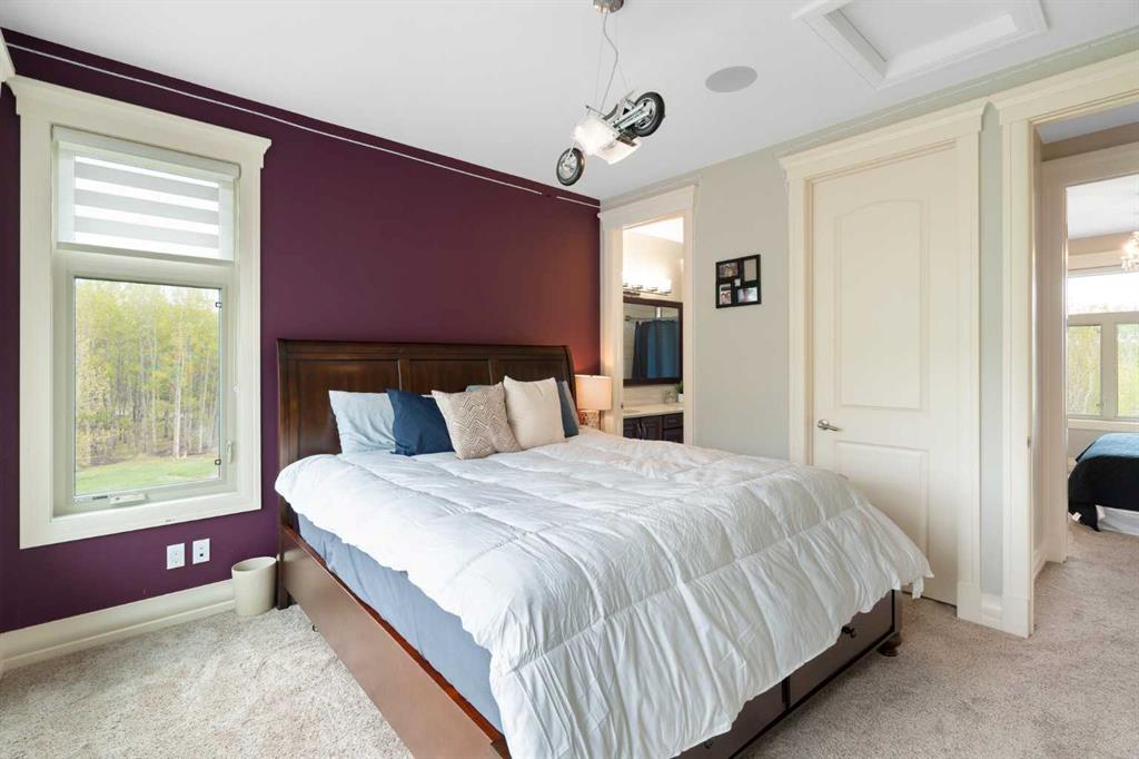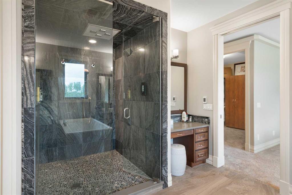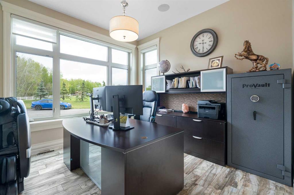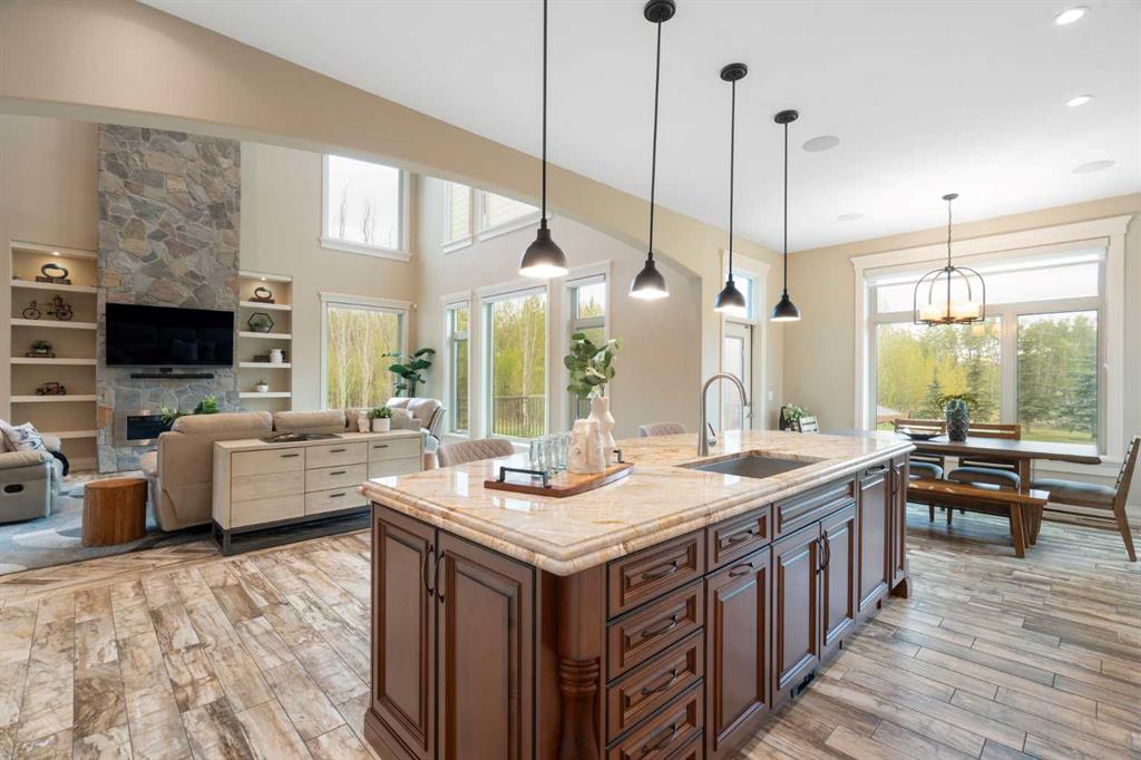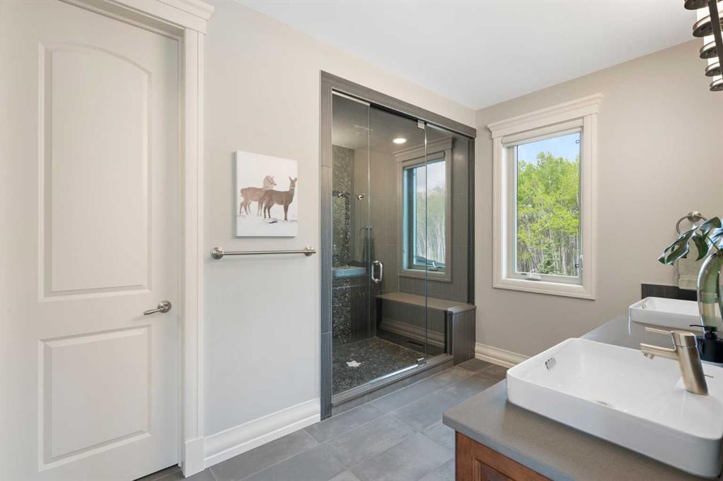 An Exquisite 4.5 acre estate in prestigious Bearspaw! Tucked in behind 12 Mile Coulee on BEARSPAW VIEW, this lot is as close to the city as you get while still enjoying the pinnacle of quiet country living. This extraordinary 2016 custom-built luxury home is set on a beautifully treed lot with a very usable yard for family fun and games. Privately gated with a winding tree-lined driveway, this magnificent residence is beautifully set back in the site. Quality is immediately apparent on the exterior with exposed aggregate pads and stairs, real stone cladding, a RUBBER ROOF, and GEMSTONE lighting! The floor plan of this home blends functionality and luxury through its high end materials, and amazing layout! The floorplan design allows for 6 of the 7 BEDROOMS to be serviced with ensuite washrooms providing luxury to every family member and guest. The homes flexibility is showcased by having the equivalent of 3 PRIMARY BEDROOMS - one on each level of the home! The custom home itself showcases exquisite flooring, beautiful materials and thoughtfully curated lighting throughout.