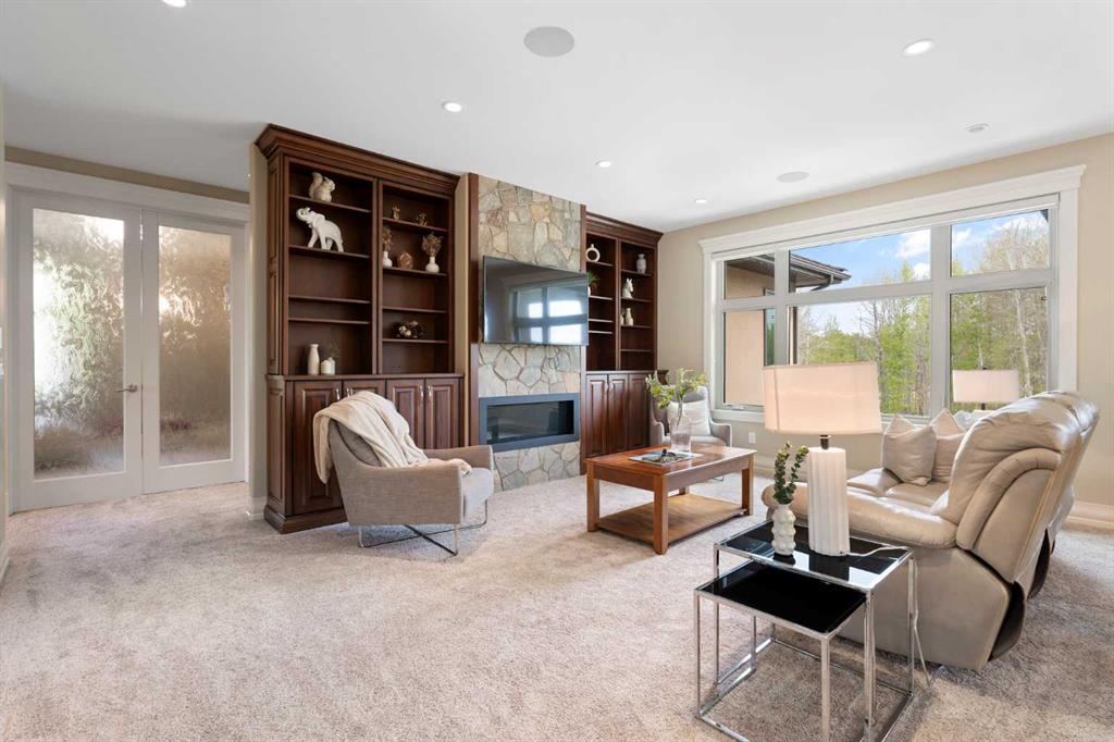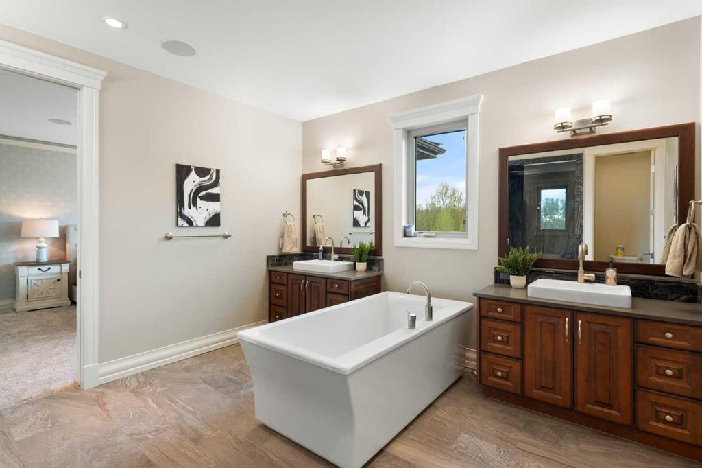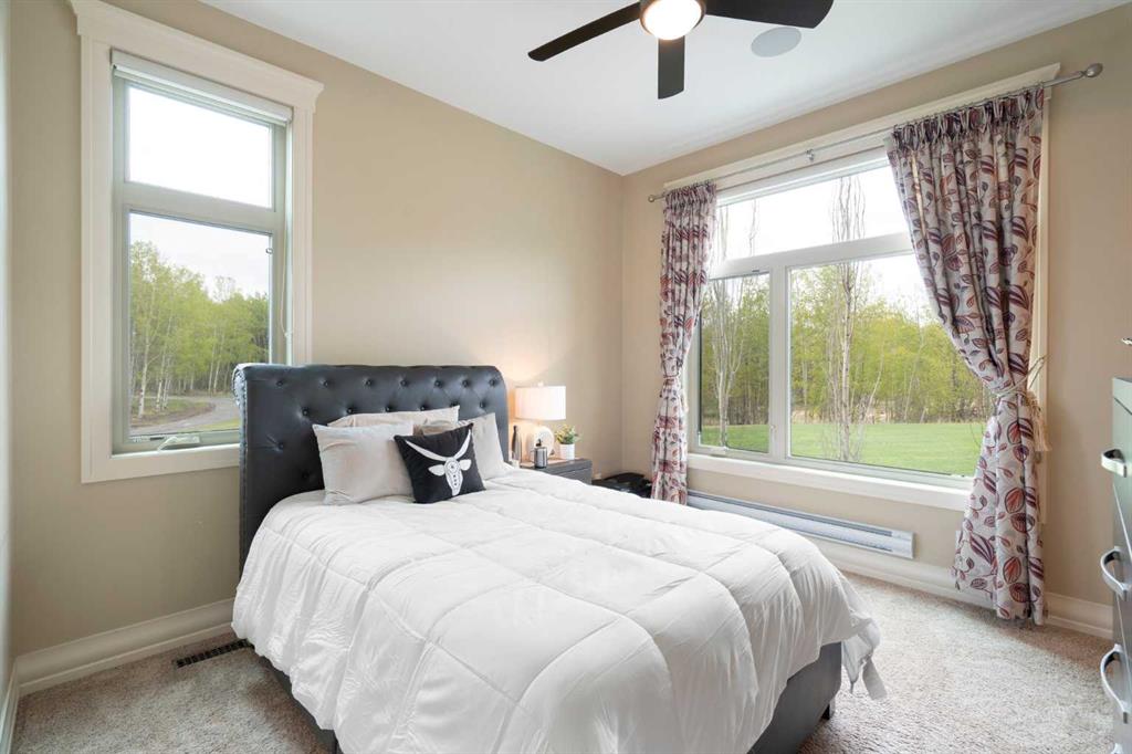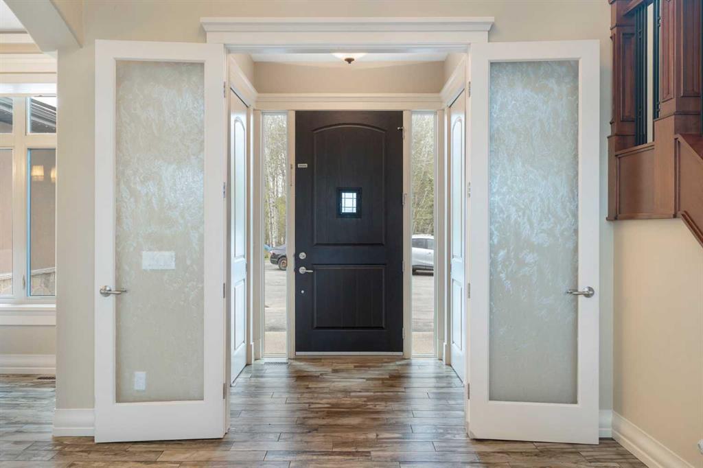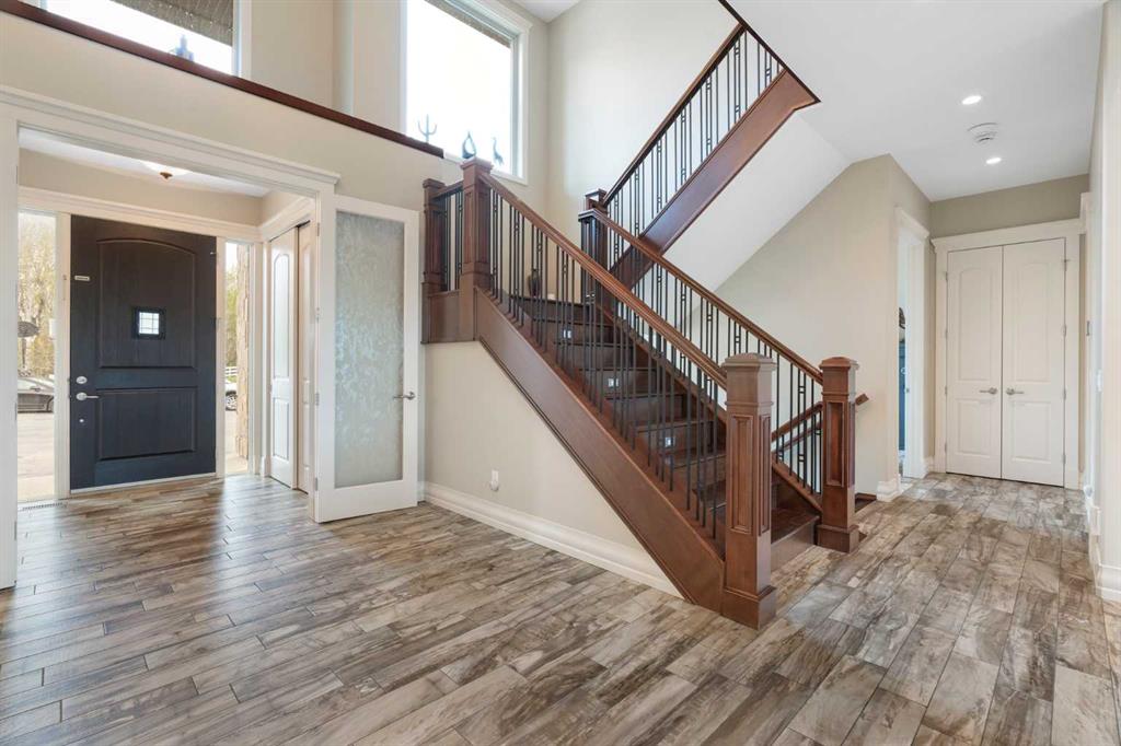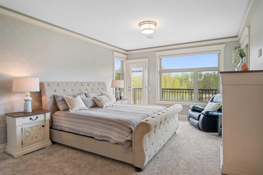 An Exquisite 4.5 acre estate in prestigious Bearspaw! Tucked in behind 12 Mile Coulee on BEARSPAW VIEW, this lot is as close to the city as you get while still enjoying the pinnacle of quiet country living. This extraordinary 2016 custom-built luxury home is set on a beautifully treed lot with a very usable yard for family fun and games. Privately gated with a winding tree-lined driveway, this magnificent residence is beautifully set back in the site. Quality is immediately apparent on the exterior with exposed aggregate pads and stairs, real stone cladding, a RUBBER ROOF, and GEMSTONE lighting! The floor plan of this home blends functionality and luxury through its high end materials, and amazing layout! The floorplan design allows for 6 of the 7 BEDROOMS to be serviced with ensuite washrooms providing luxury to every family member and guest. The homes flexibility is showcased by having the equivalent of 3 PRIMARY BEDROOMS - one on each level of the home! The custom home itself showcases exquisite flooring, beautiful materials and thoughtfully curated lighting throughout.