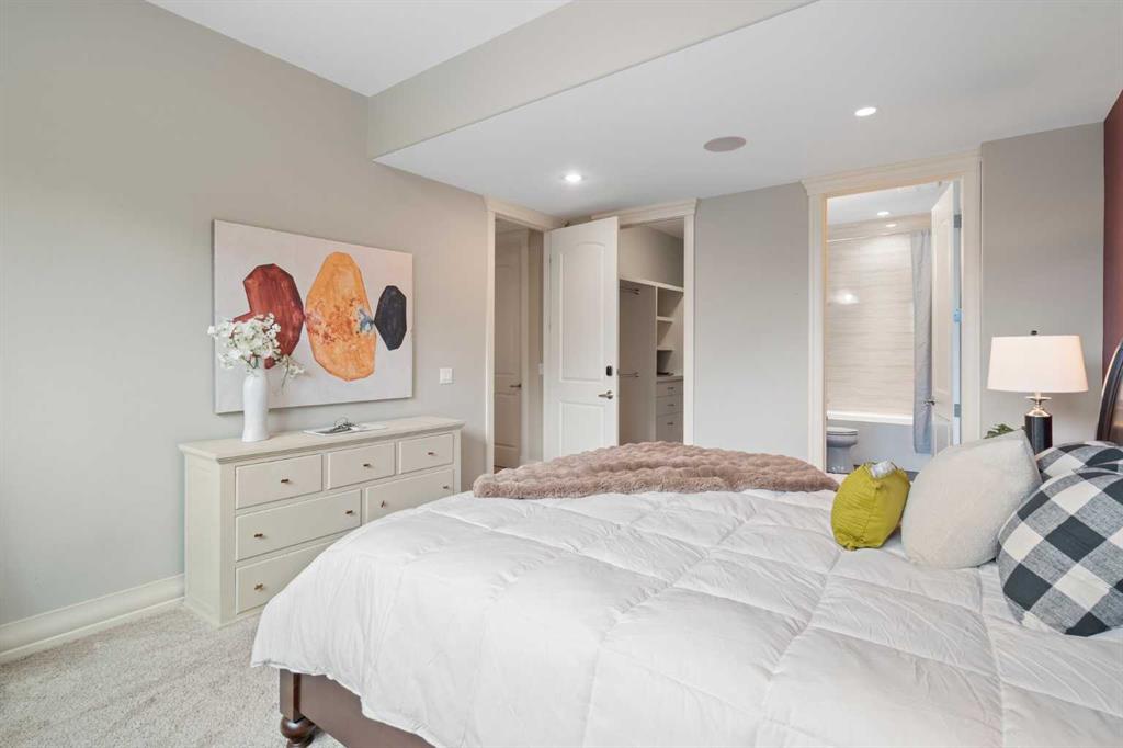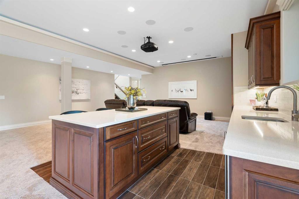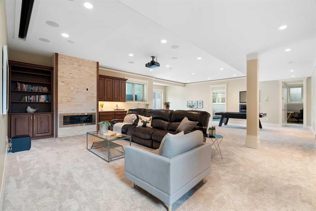 The fully developed walk-out basement radiates warmth with in-floor heating and abundant natural light, creating an ideal environment for both relaxation and entertainment. Here, you’ll find a sleek bar, a versatile recreation room, a spacious family lounge, multiple guest bedrooms—including one with a contemporary ensuite—and a private home office for uninterrupted productivity.