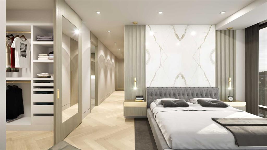 Perhaps the finest 2500 square foot offering in Calgary, brand new in The Kenten. Welcome to your dream single-level residence in the sky with 130 feet of glass, 3 elevations, overlooking the river, trees, cityscape. Optional 4 Bedroom 3 Bathroom, Masterfully designed by architects Davignon and Martin, The Bow is designed to give Calgarians an inner-city experience without sacrificing the comforts appreciated in an executive home. As you step in, you are greeted by a sweeping view of the river; floor to ceiling triple-pane windows with a 10 foot ceiling; a massive open concept kitchen, living, and dining room designed to entertain your family and friends. Enjoy a gourmet kitchen with Sub-Zero & Wolf appliances including a dedicated fridge and freezer, an abundance of storage, a bar, wine wall, and a floating fireplace that all flow towards your opening wall system. Step out onto your large terrace overlooking the beautiful Bow River. Enjoy a spacious primary bedroom with custom millwork, walk-in closet, and 6 piece ensuite bathroom with a floating tub, heated floors, and double shower with steam. The second bedroom comes with it's own walk-in closet and ensuite bathroom, and the third bedroom comes with a cheater ensuite bathroom and a built-in murphy bed with room for a desk. An huge riverfront den and laundry room complete the residence accompanied by 2 bike racks, 2 titled storage lockers, and 3 titled parking stalls. There are 3 Modern palettes to choose from that can be further customized to your liking. The Kenten features over 8,000 square feet of amenities including a sky lounge, gym overlooking Kensington, golf simulator, sauna, hot tub, concierge, guest suites, car wash, and more. Explore a simplified lock and leave lifestyle you didn't know was possible, with 250+ shops and restaurants in Kensington and river pathways stemming from one end of the city to the other. Now preselling, our Show Suite is open for viewings by private appointment. With only 44 residences, don't miss this once in a lifetime opportunity to live at the most interesting corner in Calgary.