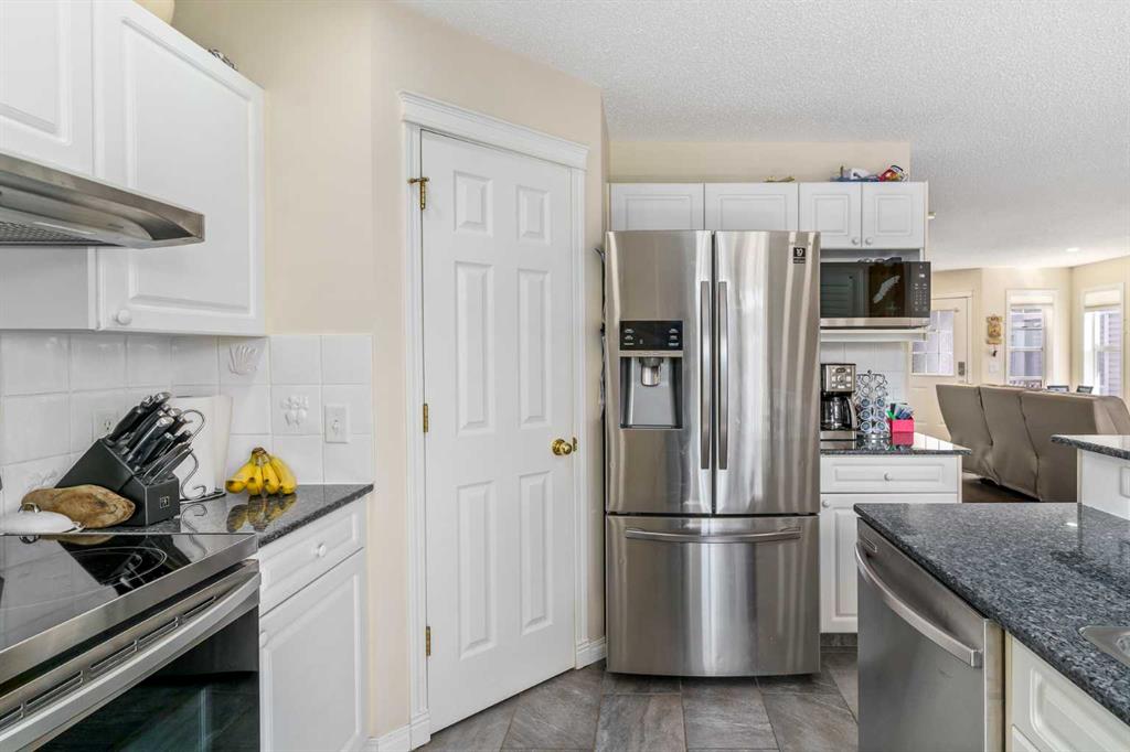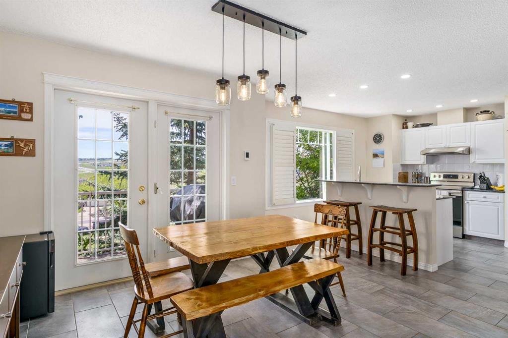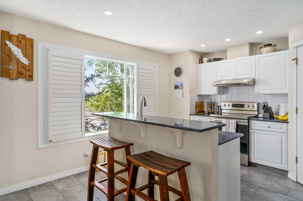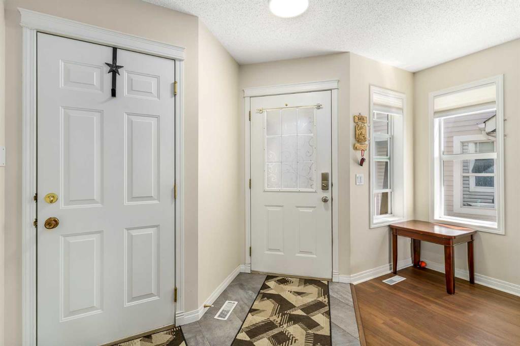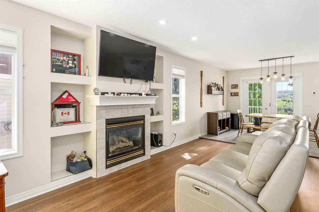 Attractive two-storey, end unit townhouse in the desirable community of Hidden Valley NW is an absolute must see! Pride of ownership is evident in this 1,545 sq. ft., 2 bedrooms, 2.5 bath home. A wide front drive and insulated, attached, double garage ensure parking room for at least four vehicles. The main floor introduces you to an open-concept living room, dining area and kitchen, each with their own unique features. A natural gas fireplace with tiled mantle in the living room provides charm and warmth on cold winter evenings. The dining area affords access to the sunny SW facing patio where you can barbecue to your heart’s content and take in a splendid view of the Valley. The kitchen has elegant white cabinets, new stainless appliances, deluxe granite countertops, an island/breakfast bar providing additional prep room, a handy corner pantry and a special touch – new ceramic tiling (kitchen and dining area) with in-floor heating (kitchen only). A convenient 2-pc. bath with roughed-in plumbing for laundry completes the main level. Note that the lighting on the main level has been upgraded. The second floor has a substantial, roomy primary bedroom with a vaulted ceiling and a 4-pc. ensuite, once more, with the added comfort of ceramic tiling and in-floor heating. An amply sized second bedroom also has a 4-pc. ensuite. A bonus area could be utilized as a home office, reading area or entertainment zone. The walk-out basement is fully finished and features an electric fireplace, laundry room and roughed-in plumbing for an additional bathroom. Ideally located near major routes such as Stoney and Beddington Trails, Country Hills Boulevard and shopping/restaurants; Hidden Valley Park; Country Hills Golf Club; numerous schools (K-6, 5-9, public and Catholic); churches; transit and easy access to Calgary International Airport. The benefits of this property are numerous. Not only are there upgrades such as new laminate flooring on the main level, central air conditioning, new furnace, hot water tank and humidifier but common area maintenance provided by a professional management company only adds to the value and convenience. Call today and arrange for an exclusive in-person tour.