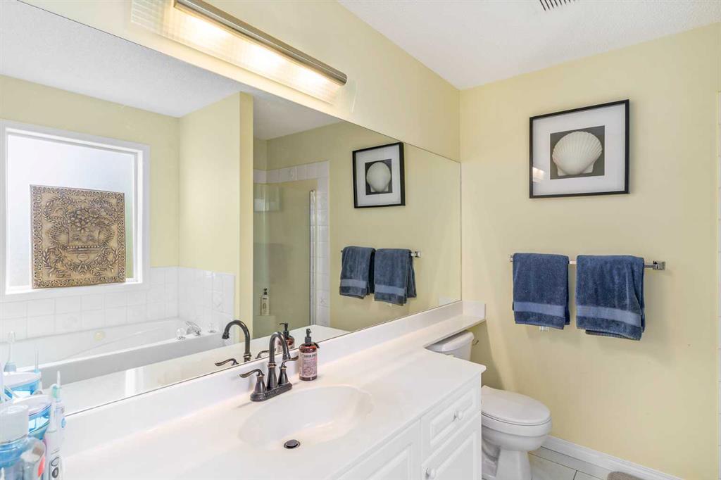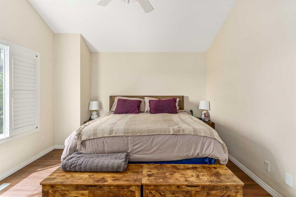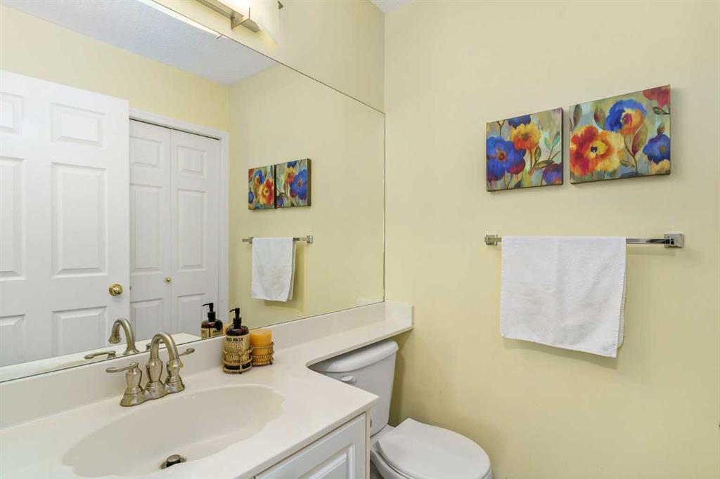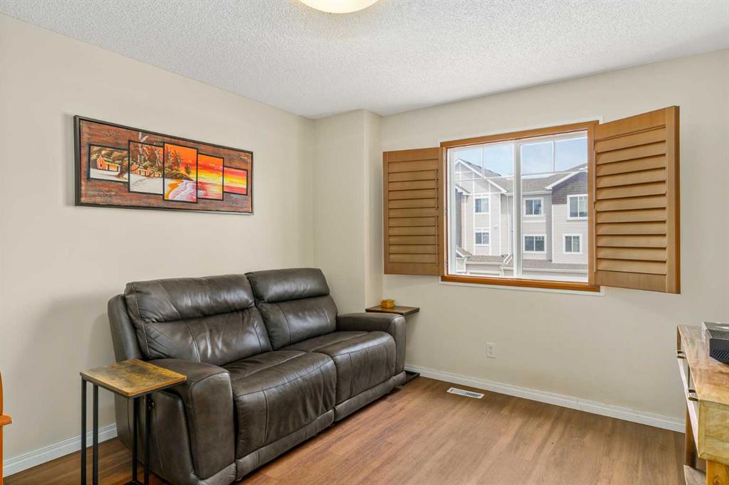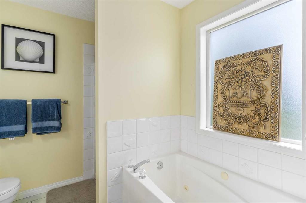 Attractive two-storey, end unit townhouse in the desirable community of Hidden Valley NW is an absolute must see! Pride of ownership is evident in this 1,545 sq. ft., 2 bedrooms, 2.5 bath home. A wide front drive and insulated, attached, double garage ensure parking room for at least four vehicles. The main floor introduces you to an open-concept living room, dining area and kitchen, each with their own unique features. A natural gas fireplace with tiled mantle in the living room provides charm and warmth on cold winter evenings. The dining area affords access to the sunny SW facing patio where you can barbecue to your heart’s content and take in a splendid view of the Valley. The kitchen has elegant white cabinets, new stainless appliances, deluxe granite countertops, an island/breakfast bar providing additional prep room, a handy corner pantry and a special touch – new ceramic tiling (kitchen and dining area) with in-floor heating (kitchen only). A convenient 2-pc. bath with roughed-in plumbing for laundry completes the main level. Note that the lighting on the main level has been upgraded. The second floor has a substantial, roomy primary bedroom with a vaulted ceiling and a 4-pc. ensuite, once more, with the added comfort of ceramic tiling and in-floor heating. An amply sized second bedroom also has a 4-pc. ensuite. A bonus area could be utilized as a home office, reading area or entertainment zone. The walk-out basement is fully finished and features an electric fireplace, laundry room and roughed-in plumbing for an additional bathroom. Ideally located near major routes such as Stoney and Beddington Trails, Country Hills Boulevard and shopping/restaurants; Hidden Valley Park; Country Hills Golf Club; numerous schools (K-6, 5-9, public and Catholic); churches; transit and easy access to Calgary International Airport. The benefits of this property are numerous. Not only are there upgrades such as new laminate flooring on the main level, central air conditioning, new furnace, hot water tank and humidifier but common area maintenance provided by a professional management company only adds to the value and convenience. Call today and arrange for an exclusive in-person tour.