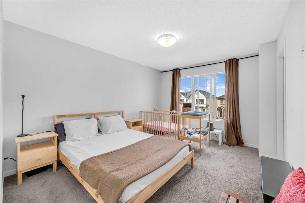 Welcome to one of the newest planned communities in NW Calgary - "Glacier Ridge". This 2024 built laned duplex has a fully finished one bedroom legal suite. Located only 25 minutes to downtown with quick access to Stoney Trail and 10+ KMS of trails. Main floor with vinyl plank flooring, high ceilings has living room/dining room combination, a 2 piece bathroom, kitchen with island, quartz counter tops, stainless steel appliances and a door to rear yard. The upper level has a good sized primary bedroom with 3 piece ensuite. Two additional bedrooms and a 4 piece bath. A well suited home in a growing community for a great family. Lower walk-up level with a separate entrance to a one bedroom legal suite. Features full kitchen with stainless steel appliances, washer/dryer, 4 piece bath and luxury flooring. Poured concrete sidewalk and double parking pad ready for future garage. Live upstairs and rent downstairs to give you a help in mortgage payments. Never to be missed opportunity.