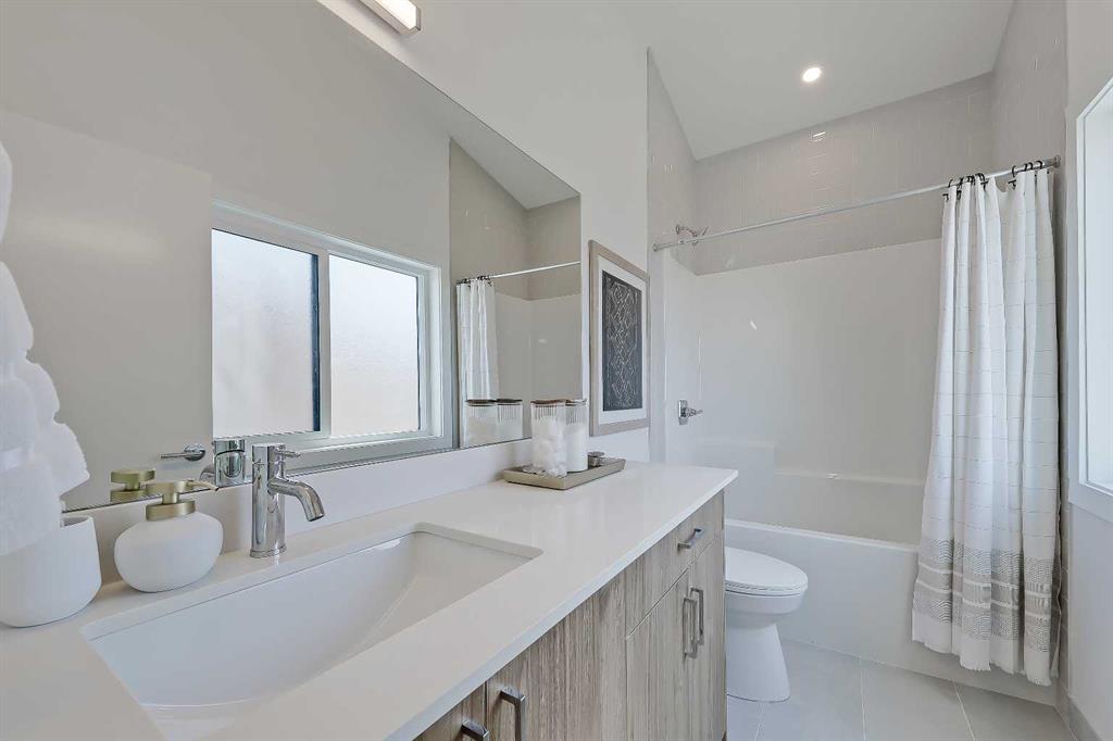 **ATTENTION FIRST-TIME BUYERS: You could qualify for up to a 100% GST rebate on this new home! Enquire Today!** With 5 upper-level units, and 5 lower-level units, this modern townhome project is sure to impress, with an unbeatable inner-city location and time still left to upgrade or customize! This listing includes TWO titled units: one upper-level 2-storey unit (#109) featuring nearly 1,100 sq ft, with 2 beds, 2.5 baths, and a single detached garage, PLUS one lower-level unit directly below (#102) boasting a sunny main floor plus a FULLY FINISHED BASEMENT totalling nearly 1,000 sq ft of developed living space, with 2 beds & 2.5 baths. Live in one and rent the other, or combine both for personal use and have a 4-bedroom townhome with 2,000+ sq ft of living space! Both units feature a sunny and bright open-concept living space, with sleek, low-maintenance luxury vinyl plank (LVP) flooring and large windows. The fully equipped modern kitchens boast dual-tone slab-style cabinetry, quartz countertops, and Samsung stainless steel appliances, including a French-door refrigerator and ceramic-top stove. Completing the main floor of both units is a spacious dining area perfect for family meals and entertaining, a living room with large windows for ample natural light and a stylish 2-piece powder room. The upper-unit level (#109) features a lacquered spindled railing leading to the sunny upper floor, where 2 bedrooms and 2 full bathrooms await. The primary bedroom boasts a 3pc ensuite and a private balcony. Down the hall is a well-sized 2nd bedroom boasting easy access to the main 4pc bathroom. Each bathroom features custom cabinetry, quartz countertops, undermount sinks, and fully tiled showers. The lower-level unit (#102) fully developed basement features 2 bedrooms and 2 full bathrooms. Each bathroom boasts custom cabinetry, quartz counters, undermount sinks, and tiled tub/showers. Plus, both units feature a convenient in-suite laundry closet with a stacked washer/dryer. Durable and stylish, the exterior features Hardie Board and Smart Board detailing, and brushed concrete steps and walks. Located in the heart of the sought-after SW inner-city community of Glenbrook, these brand-new townhomes boast a fantastic location right across the street from Glenbrook School and the Glenbrook Community Association. A number of major amenities are located within an easy 15-min walk, including Safeway, Glamorgan Bakery, and multiple restaurants including Richmond’s Pub. Plus, nearly every imaginable amenity can be found in nearby Westhills and Signal Hill Centres which are just a 6 minute drive away. Although peacefully tucked away on a lovely residential street, Sarcee Trail and Richmond Rd are both readily accessible, making everyday commuting around the city a breeze! Make this new stacked townhome yours! *Interior photos are samples taken from a past project - actual finishes may vary. **RMS measurements derived from the builder’s plans and are subject to change upon completion.