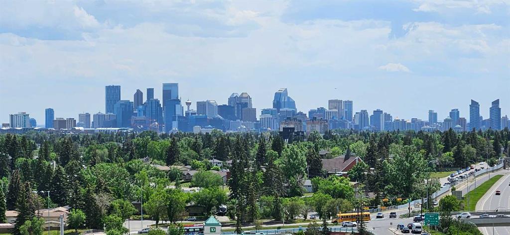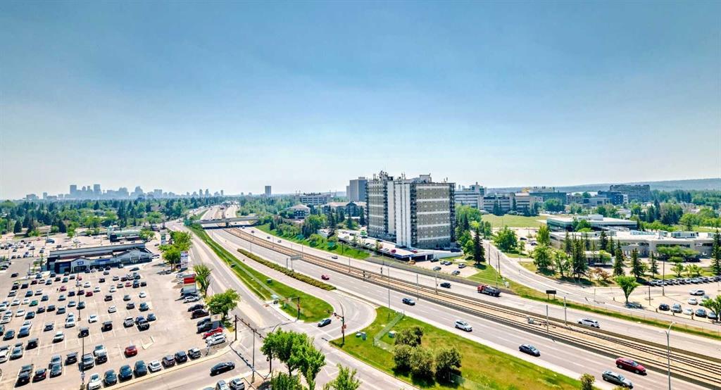 Priced to sell, move-in ready! It’s All About The View!! Experience urban living in the Brentwood community on the 12th floor of the University City complex, with stunning downtown Calgary views. This modern one-bedroom, one-bath condo (builder’s spec 515 sq ft) features 9-foot ceilings, floor-to-ceiling windows, upgraded cabinets, granite countertops, stainless steel appliances, in-unit washer and dryer, and central air, all filled with natural light. Enjoy your private balcony overlooking the breathtaking skyline while taking advantage of building amenities such as a fitness center, titled heated parking, and assigned storage. Perfectly located steps from shops, restaurants, and professional services, with quick access to the University of Calgary, Foothills Medical Centre, McMahon Stadium, and just a short drive to the Rocky Mountains and Banff, this home is the ideal choice for a vibrant lifestyle.