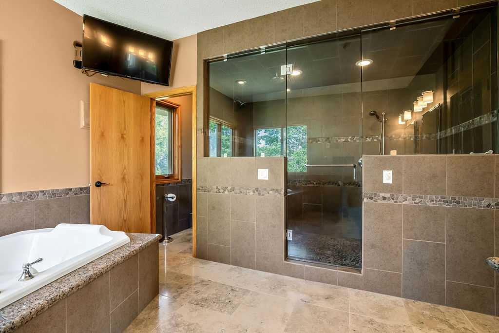 Step inside to a grand entrance that opens to soaring ceilings, new designer lighting, and elegant finishes throughout. The main floor features a retreat-like primary suite, complete with spa-inspired amenities, while heated floors in the expansive basement offer year-round comfort. Three fireplaces add warmth and ambiance to the main living areas.