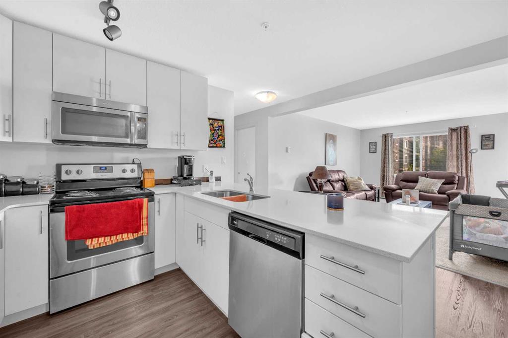 Welcome to this stunning apartment located in the vibrant and family-friendly community of Skyview Ranch in NE Calgary. Featuring 2 spacious bedrooms, 1 full bathroom, and 1 parking spot( titled underground).This home offers incredible value and convenience. Step inside to discover an open-concept layout with a modern kitchen that boasts quartz countertops, sleek cabinetry, and stainless steel appliances. The adjacent dining area is impressively spacious—perfect for entertaining. The bright and airy living room is filled with natural light from large windows and leads out to a private balcony—ideal for relaxing or enjoying your morning coffee. Both bedrooms feature large windows and their own closets, offering natural light and ample storage space. A 4-piece bathroom serves the entire unit, and in-suite laundry adds to the everyday convenience. This well-maintained complex also features desirable amenities like a party room, fully equipped gym, picnic areas, and ample visitor parking. With easy access to Metis Trail, Stoney Trail, and public transit, commuting is a breeze. Enjoy close proximity to parks, playgrounds, schools, shopping plazas, Costco, Cross Iron Mills, restaurants, and more! Whether you’re a first-time homebuyer or a savvy investor, this home checks most of the boxes. Don’t miss out—book your private showing today!