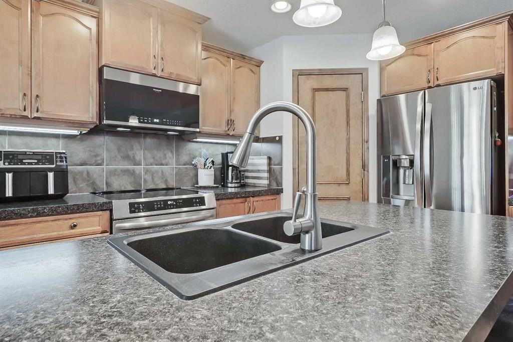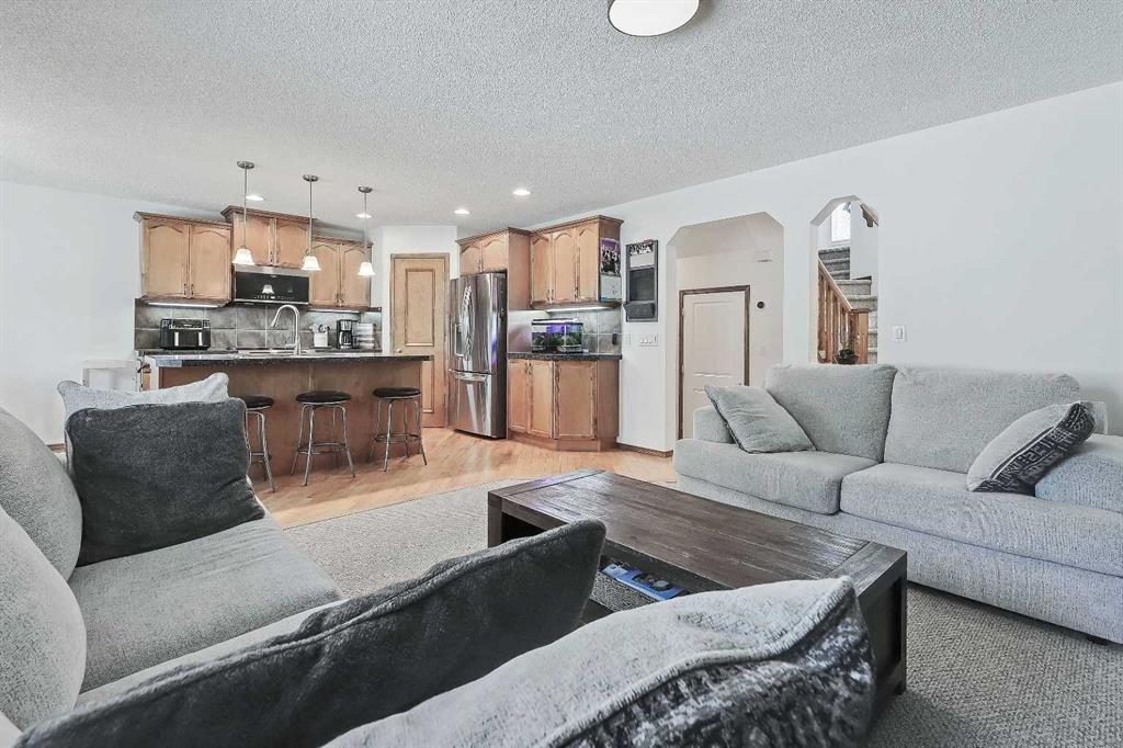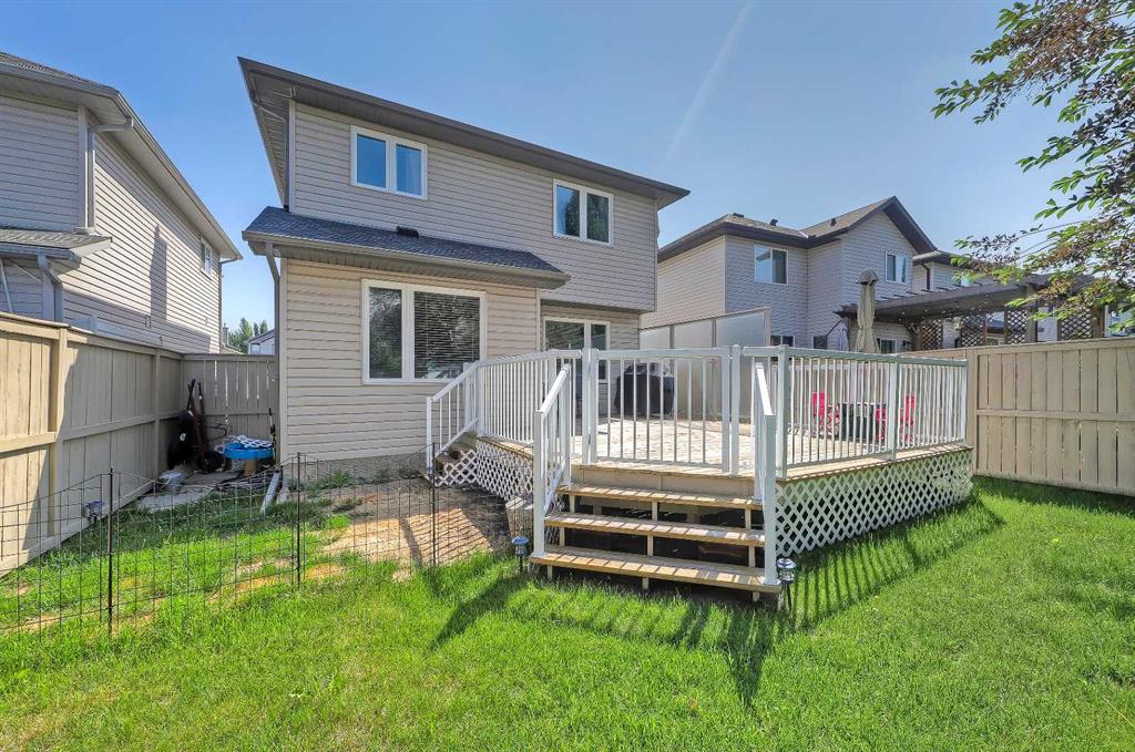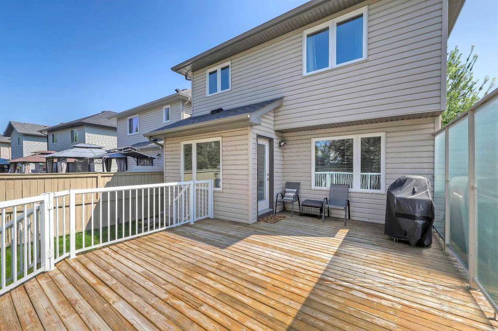 *VISIT MULTIMEDIA LINK FOR FULL DETAILS, INCLUDING IMMERSIVE 3D TOUR & FLOORPLANS!* OVER $30K IN UPGRADES | NEWER ROOF | NEW WINDOWS THROUGHOUT | GREAT STARTER HOME AT A FANTASTIC NEW PRICE! Located in the highly sought-after community of Cranston, this well-maintained detached home offers over 1,600 sq ft above grade, 3 bedrooms, 2.5 bathrooms, a spacious upper-floor bonus room, and a double front-attached garage. Thoughtful updates—including a new roof and new windows—provide long-term peace of mind. Inside, a welcoming foyer with display niches leads into a bright, open-concept layout with hardwood floors flowing through the kitchen and dining areas. The well-appointed kitchen features stainless steel appliances, a corner pantry, tile backsplash, central island with bar seating, and plenty of cabinet space. The adjoining dining area opens to the rear deck, perfect for indoor-outdoor living, while the carpeted living room offers space to relax with family and friends. A laundry room/mudroom off the garage adds convenience, and a 2-piece powder room is tucked away for privacy. Upstairs, the home offers 3 bedrooms, 2 full bathrooms, and a large bonus room with big windows and a stone-faced corner fireplace. The secondary bedrooms are generously sized and share a 4-piece bath with tiled flooring and a tub/shower combo. The spacious primary retreat includes a walk-in closet and a 4-piece ensuite with a jetted soaker tub, stand-up shower, and extended vanity. The unfinished basement is ready for future development, offering endless potential to add value and additional living space. Outside, enjoy a fully fenced backyard with a large upper deck and ample yard space for kids and pets. The double front-attached garage is great for parking and storage, plus there’s additional parking on the front driveway. Ideally situated in Cranston, near parks, schools, walking paths, the Bow River, and major routes like Deerfoot and Stoney Trail—this is a wonderful opportunity to settle into a vibrant, family-friendly neighbourhood. Don’t miss your chance—book your private showing today!