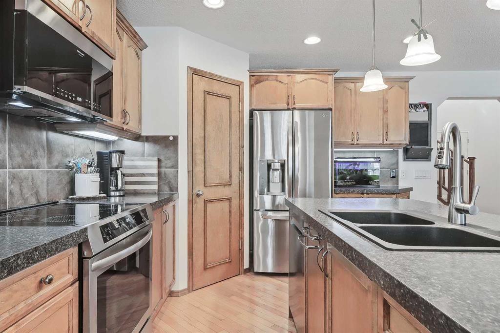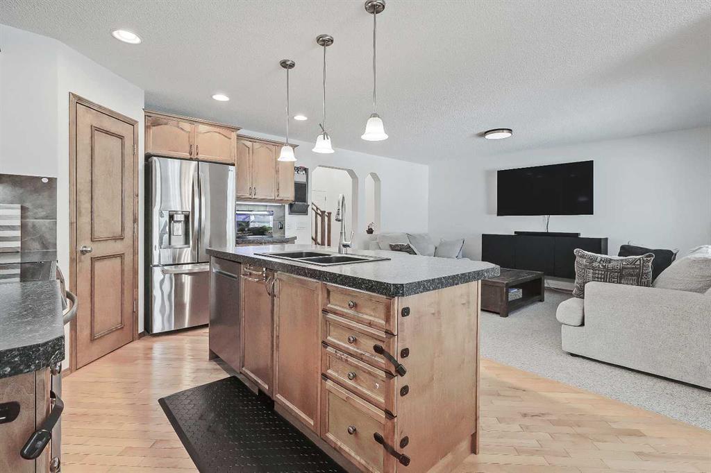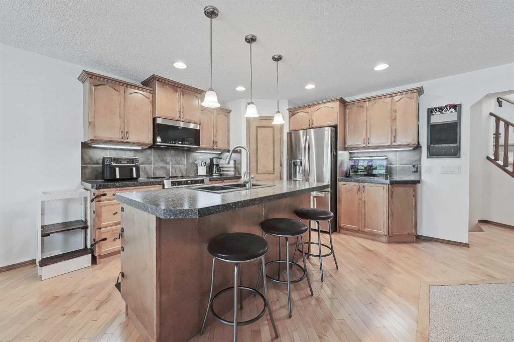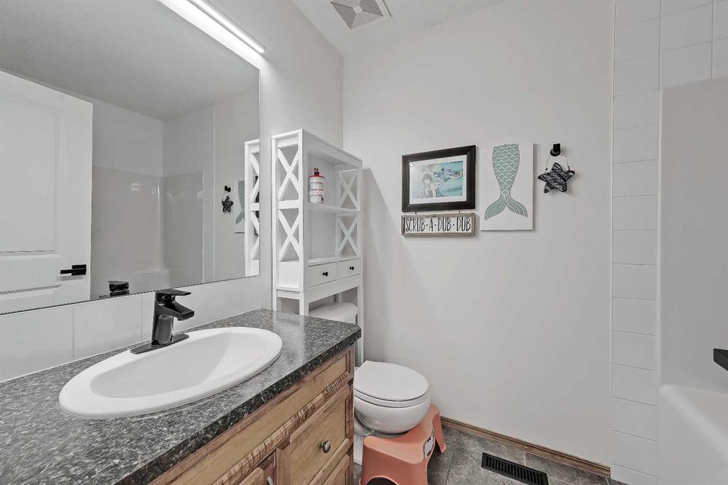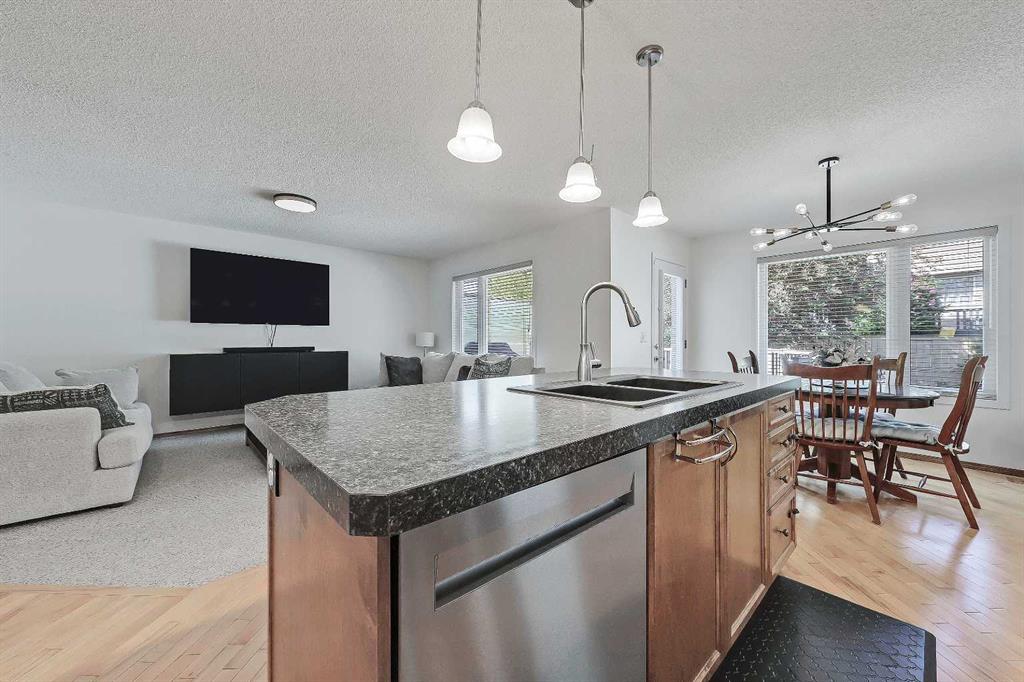 *VISIT MULTIMEDIA LINK FOR FULL DETAILS, INCLUDING IMMERSIVE 3D TOUR & FLOORPLANS!* OVER $30K IN UPGRADES | NEWER ROOF | NEW WINDOWS THROUGHOUT | GREAT STARTER HOME AT A FANTASTIC NEW PRICE! Located in the highly sought-after community of Cranston, this well-maintained detached home offers over 1,600 sq ft above grade, 3 bedrooms, 2.5 bathrooms, a spacious upper-floor bonus room, and a double front-attached garage. Thoughtful updates—including a new roof and new windows—provide long-term peace of mind. Inside, a welcoming foyer with display niches leads into a bright, open-concept layout with hardwood floors flowing through the kitchen and dining areas. The well-appointed kitchen features stainless steel appliances, a corner pantry, tile backsplash, central island with bar seating, and plenty of cabinet space. The adjoining dining area opens to the rear deck, perfect for indoor-outdoor living, while the carpeted living room offers space to relax with family and friends. A laundry room/mudroom off the garage adds convenience, and a 2-piece powder room is tucked away for privacy. Upstairs, the home offers 3 bedrooms, 2 full bathrooms, and a large bonus room with big windows and a stone-faced corner fireplace. The secondary bedrooms are generously sized and share a 4-piece bath with tiled flooring and a tub/shower combo. The spacious primary retreat includes a walk-in closet and a 4-piece ensuite with a jetted soaker tub, stand-up shower, and extended vanity. The unfinished basement is ready for future development, offering endless potential to add value and additional living space. Outside, enjoy a fully fenced backyard with a large upper deck and ample yard space for kids and pets. The double front-attached garage is great for parking and storage, plus there’s additional parking on the front driveway. Ideally situated in Cranston, near parks, schools, walking paths, the Bow River, and major routes like Deerfoot and Stoney Trail—this is a wonderful opportunity to settle into a vibrant, family-friendly neighbourhood. Don’t miss your chance—book your private showing today!