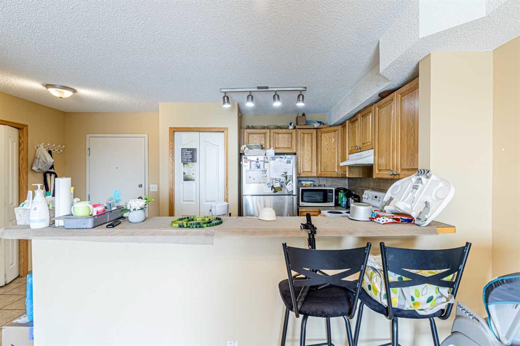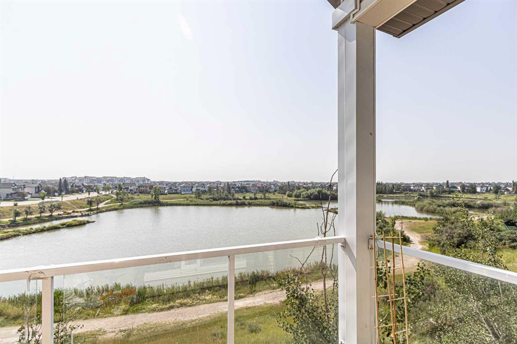 Welcome to Raven Ridge Gardens, a charming complex situated in the desirable community of Saddle Ridge. This well-maintained condo backs on the pond with gorgeous views! This top floor unit encompasses over 813.55 sq ft of living space featuring 2 bedrooms, 2 full baths , and a titled parking space. The main floor showcases beautiful laminate flooring and an open concept floorplan. The spacious living room has sliding doors giving access to the balcony, perfect for enjoying the views on summer days. The modern kitchen is equipped with wood cabinetry, white and stainless steel appliances, and a breakfast bar. A single car titled parking space provides parking for your convenience. The location is unbeatable, with schools, parks, playgrounds, restaurants, shopping, and public transit just minutes away. Quick access to Stoney Trail, making exploring the city a breeze. Book your private viewing today!