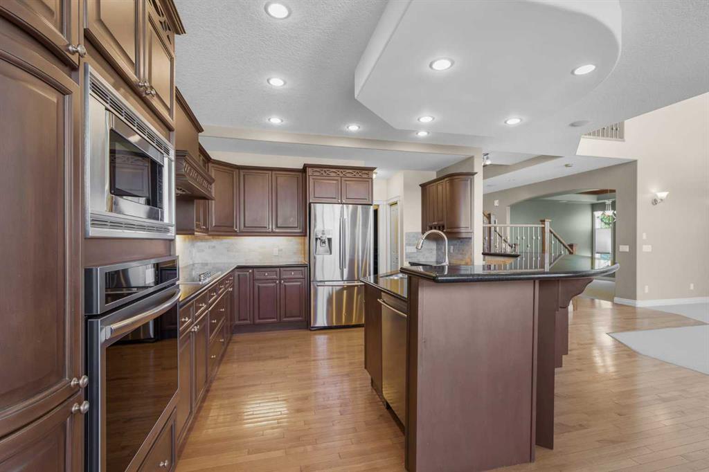 OPEN HOUSE: Sunday, Dec 14th, 2 - 4 pm. This is it!! This is your opportunity to live in the sought-after enclave of Springborough located in Springbank Hill. Welcome to this exceptional custom family home offering over 4500 sq ft of developed living space complete with walk-out basement & huge pie lot. This beautifully crafted home will impress the most discerning buyer with its soaring ceilings & expansive windows that allow natural light in throughout the day. At the front of the home is a lovely front veranda that is perfect for enjoying a morning coffee. Stepping inside, you’re greeted with a large entryway & open concept main floor that showcases the seamless flow of living between the dining, family & kitchen areas & creates both a warm & bright feeling throughout. At the heart of home is a spacious gourmet kitchen equipped with stainless steel appliances, granite countertops, a huge island, large walk-in pantry & a bright breakfast nook. The adjoining 2-story family room is anchored by a beautiful fireplace surrounded by built-ins & overlooks the landscaped backyard blending style & function for everyday living & entertaining. The formal dining room is both intimate & inviting which allows the flexibility to have both formal & informal get togethers. The expansive deck off the breakfast nook has mountain views, Duradeck & glass railing, is perfect for summer evenings with room for furniture, a gas line for a BBQ & stairs to a lower deck & the yard below. Completing the main floor is a private home office, large mudroom/laundry room with lots of built-ins & guest powder room. Upstairs, the expansive primary bedroom is a luxurious retreat featuring room for a king bed, a spa inspired ensuite with double vanity, separate make-up counter, soaker tub, separate shower, separate toilet room, linen closet & walk-in closet with organizers. Two additional well-sized bedrooms, a full bathroom & a spacious bonus room with extensive built-ins & wet bar complete the upper level. The sunlit lower level walk-out is a bright, open entertaining area with a second fireplace, room for a pool table, has a 4th large bedroom, full bathroom, flex room that is perfect as a yoga/workout area or gaming room & has plenty of room for storage. With access to a private covered lower patio that leads to a beautifully landscaped yard, this home is perfect for family living & entertaining year-round. Completing the fenced yard is a stone patio, underdeck storage, shed, raised gardens, irrigation, wiring for a hot tub & tucked away fire pit. The oversized attached double garage & long driveway provide plenty of storage & parking for larger families. In addition, this home comes with 2 a/c units & central vac throughout. Recent upgrades include: new carpet, 2 furnaces, 2 hot water tanks & 2 a/c units. This prime location is close to schools, Aspen Landing, Westside Rec, transit, parks, playgrounds, paths, outdoor rinks, ball diamonds & is in the heart of a wonderful community.