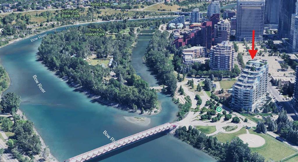 Welcome to The Concord – Calgary’s pinnacle of luxury living, perfectly situated along the Bow River, beside the Peace Bridge and Prince’s Island Park. This iconic residence sets a new standard for refinement, sophistication, and lifestyle. Arrive in style through the secure underground parkade, where your vehicle is pampered with a private wash before settling into your titled, fully upgraded 2-car private garage featuring custom cabinetry, epoxy floors, EV connection, and Wi-Fi connectivity. Take your private elevator directly to your riverfront unit, where floor-to-ceiling windows frame captivating Bow River views. The open-concept living area is adorned with wide-plank hardwood floors, timeless wainscoting, and elegant wallpaper, centered by a sleek gas fireplace. The chef-inspired Poggenpohl kitchen features Bianco Statuario marble, Miele appliances, and an oversized fridge—seamlessly blending into the spacious living and dining area. Step onto the oversized balcony for breathtaking park and river views. The master bedroom offers panoramic views, a custom Poliform walk-through closet, and a spa-inspired ensuite with a 66” freestanding tub, 10mm glass shower, double vanity, and in-floor heating. A second bedroom, marble-clad main bath with soaker tub, and a glass-enclosed den complete the thoughtful layout. Smart home automation, Control4 system, motorized blinds, built-in speakers, security cameras, and designer lighting offer effortless comfort and peace of mind. Exclusive Concord amenities include: Private winter skating rink with Zamboni; Outdoor kitchen with BBQ & firepits; Social lounge with full bar & kitchen; Guest suite; 24-hour concierge; Gym + yoga studio; Car wash bays. Experience riverside luxury living redefined - book your viewing today!