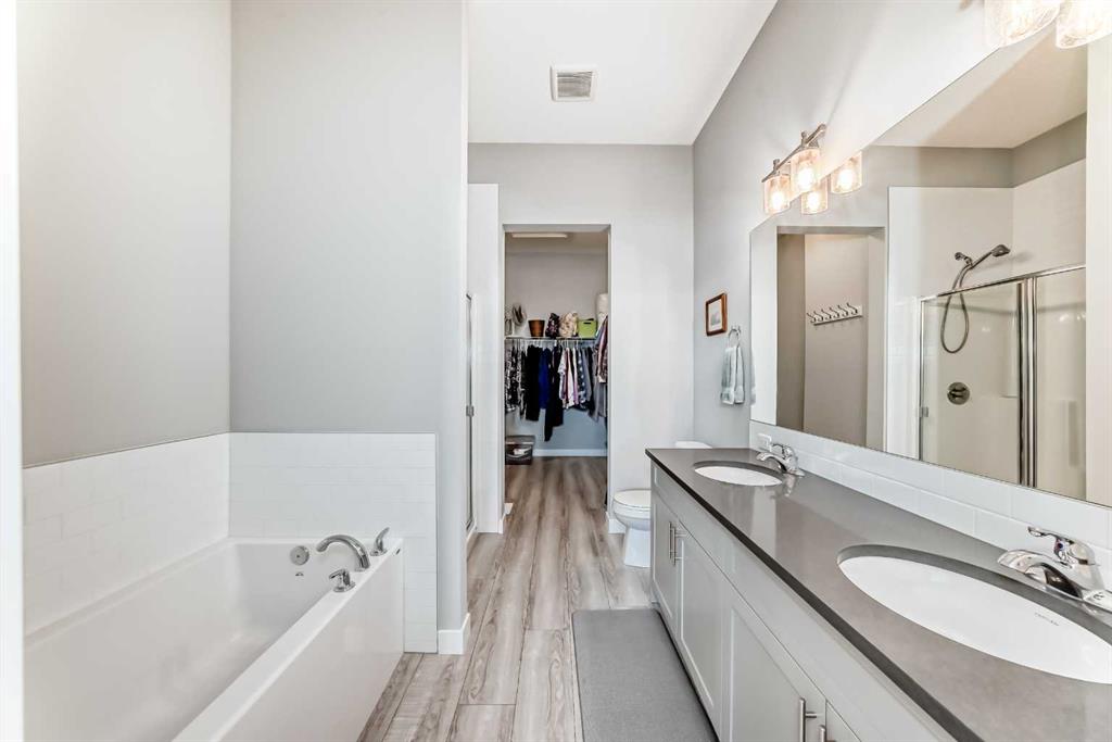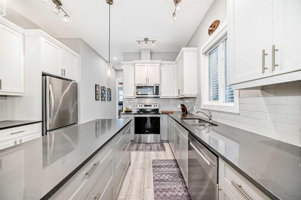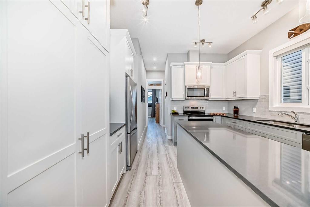 OPEN HOUSE SAT DEC 20TH 12-2PM **WELCOME HOME!** Step inside this beautifully upgraded and meticulously maintained bungalow, where pride of ownership is immediately evident. Nestled in the highly desirable NW Livingston community, this immaculate 3-bedroom, 2.5-bathroom home combines modern elegance with everyday functionality. The exterior boasts durable *Hardie Board Siding* and *Class 4 shingles*, offering extra protection against hailstorms. Triple-pane windows and custom *Hunter Douglas blinds* add both style and energy efficiency, ensuring year-round comfort. Inside, the main level features soaring 10’ ceilings, luxury vinyl plank flooring, and an open-concept design that effortlessly connects the living room, dining area, and kitchen—creating a bright, airy space perfect for both entertaining and day-to-day living. At the heart of the home is the chef-inspired kitchen, complete with sleek two-toned cabinetry, gleaming *quartz countertops*, and a large central island. It’s fully equipped with stainless steel appliances, a microwave/hood fan combo, abundant cabinetry, and top-notch lighting that makes meal prep and gathering a true pleasure. The spacious primary bedroom is a private retreat, featuring a luxurious 5-piece ensuite with dual vanities, a deep soaker tub, and a walk-in closet. Large windows flood the room with natural light, enhancing the peaceful ambiance. A back boot room and laundry area, as well as a stylish 2-piece powder room, complete the main floor. The professionally developed lower level offers two additional bedrooms—each with walk-in closets—along with a modern 4-piece bathroom. High 9’ ceilings and a cozy family room with a gas fireplace provide the perfect place to unwind. Thoughtful lighting and plenty of storage make this space both functional and inviting. You'll also find a Heat Recovery Ventilator (HRV). A *double detached garage* (19'9"x19') offers ample parking and storage, and the property enjoys the convenience of a paved back alley. Located just minutes from Stoney Trail and Deerfoot Trail, this home offers quick access to downtown, shopping, entertainment, and more. Don’t miss the chance to make this dream home your own! **Call your favorite REALTOR® today to book your private showing!**
