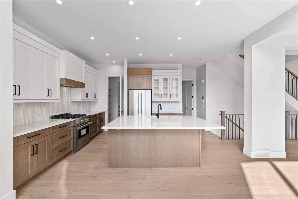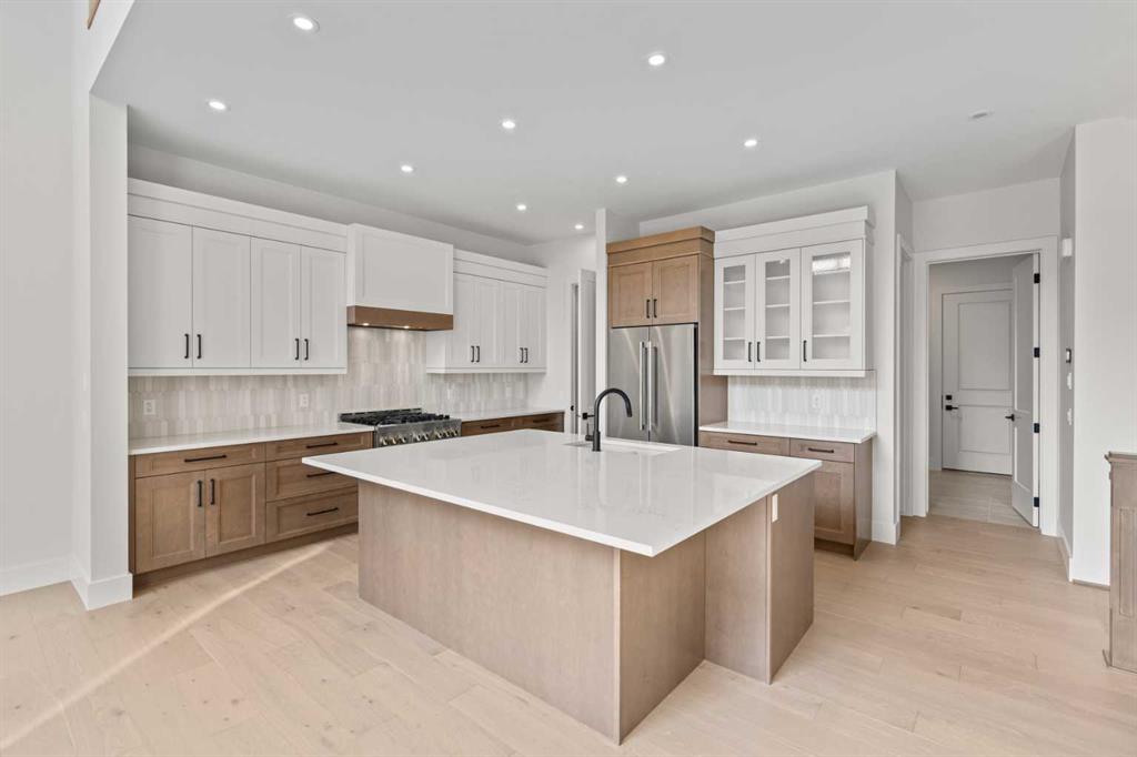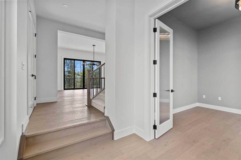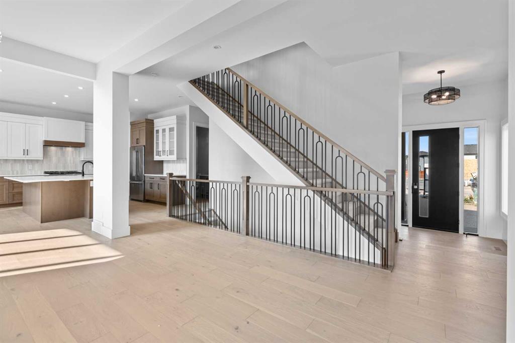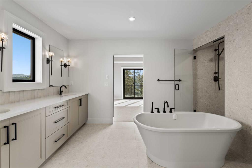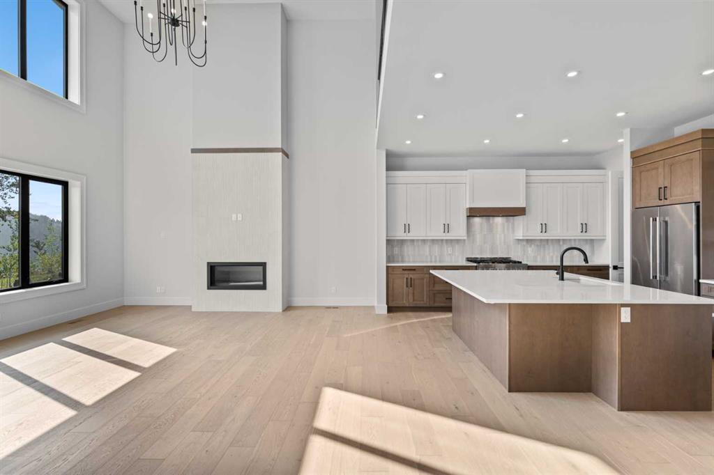 5 BEDS | 4.5 BATHS | 5,054 TOTAL SQ.FT. | RIVER VALLEY VIEWS | PREMIUM WALKOUT LOT | LUXURY FINISHES | Backing directly onto the Bow River valley on a premium south-exposed walkout lot, this brand-new luxury home by Crystal Creek Homes offers over 5,000 sq ft of finished living space. A soaring open-to-above great room and full-width covered deck frame unobstructed valley vistas, the chef’s kitchen pairs two-tone cabinetry with a premium appliance package, and a main-floor office lets you work without leaving the view. Upstairs, the south-facing primary retreat features a private balcony, luxurious ensuite with freestanding tub and oversized tiled shower, and a walk-in closet that feels more like a dressing room. While three additional bedrooms share a Jack-and-Jill bath and a separate full main bath. The walkout level hosts a bright rec area, games space, wet bar and fifth bedroom, all stepping out to a sheltered patio where you can watch eagles glide over the river. Wide-plank hardwood, curated tiles and warm neutral palettes add a relaxed elegance that feels at one with the setting. And the oversized triple garage keeps bikes, kayaks and gear at the ready for weekend adventures on nearby pathways. Complete with A/C, sprinkler system and full landscaping. This is a rare opportunity to own new construction with full builder warranty in Rockland Park - Calgary’s next great master-planned community. With future parks, playgrounds, access to the Rocky Mountains and a private recreation facility with pool. Book your private tour today