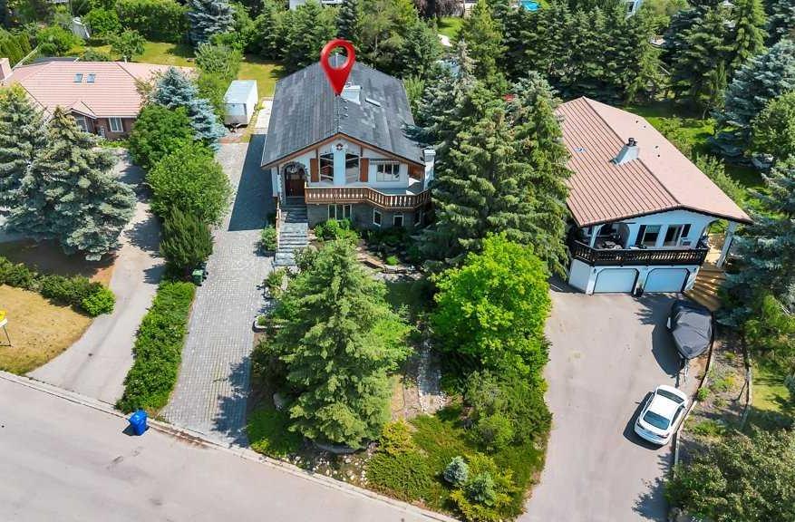 Nestled on a beautifully landscaped 1/3 acre lot adorned with mature trees, this German-inspired masterpiece offers timeless character & thoughtful design at every turn. Across the street from the lake, this one-of-a-kind home boasts stunning curb appeal with lush garden areas, complemented by abundant off-street parking & an additional poured parking pad with roughed-in in-floor heating — ready for a future garage. Inside, you're greeted by intricate custom woodwork, hand-carved detailing, slate flooring, cozy in-floor heating throughout both levels of the home & a custom front-entry fountain. The roof features tiles with a remarkable 50-year lifespan, ensuring peace of mind for years to come.