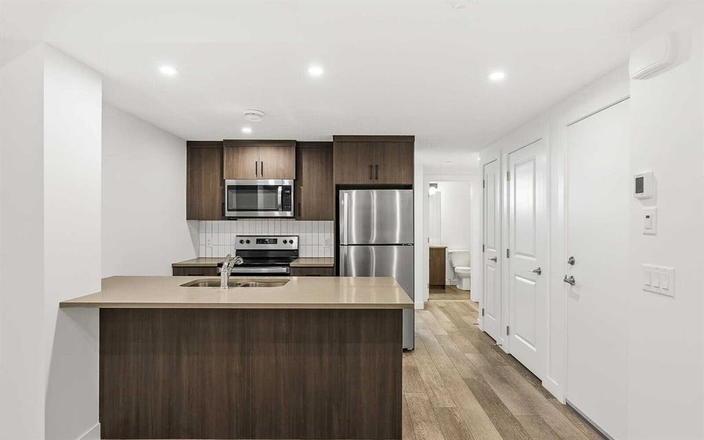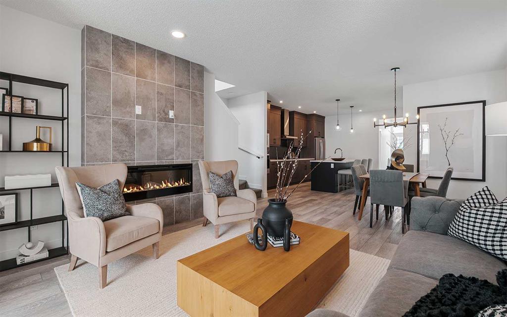 The beautiful new 'Portland' model by Brookfield Residential offers 1,900 square feet of living space + a legal 2 bedroom basement suite. Situated in the heart of Calgary's newest community, Starling, this brand new home features 2 living areas, a home office/flex space on the main level, 3 bedrooms, 2.5 bathrooms and a fully legal 2 bedroom basement suite that is accessed by its own private entrance! The expansive great room at the front of the home has a wall of west-facing windows allowing for natural light to flow through the main level all evening long. The central kitchen is complete with a suite of stainless steel appliances including a chimney hood fan and built-in microwave, a large island with additional seating space and a full walk-in pantry with ample storage space. The kitchen opens to both the living and dining areas - offering an open concept design that is ideal for entertaining. Located at the back of the home is a private flex-space, ideal for a home office of children's play space, that overlooks the backyard. Off of the rear entrance is a walk-in coat closet and two piece bathroom, completing the main level. On the upper level, a central bonus room with a window separates the primary suite from the secondary bedrooms and provides the perfect TV room in addition to the main level great room. The primary suite spans nearly 12'x12' and is complete with a large walk-in closet and private ensuite with walk-in shower. Two more bedrooms, a full bathroom and separate laundry room complete the upper level of this home - offering space for a growing family without the compromise of everyday conveniences. The legal 2-bedroom basement suite has its own private entrance and features a central kitchen with peninsula seating, a living room, 2 bedrooms, a full bathroom and laundry + storage space. Completing this home is a fully private backyard with double parking pad. Builder warranty and Alberta New Home Warranty included with this new home. *Please note: Photos are from a show home model and are not an exact representation of the property for sale.