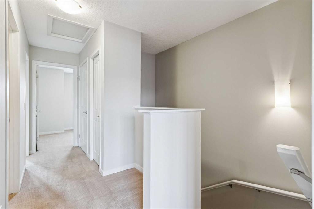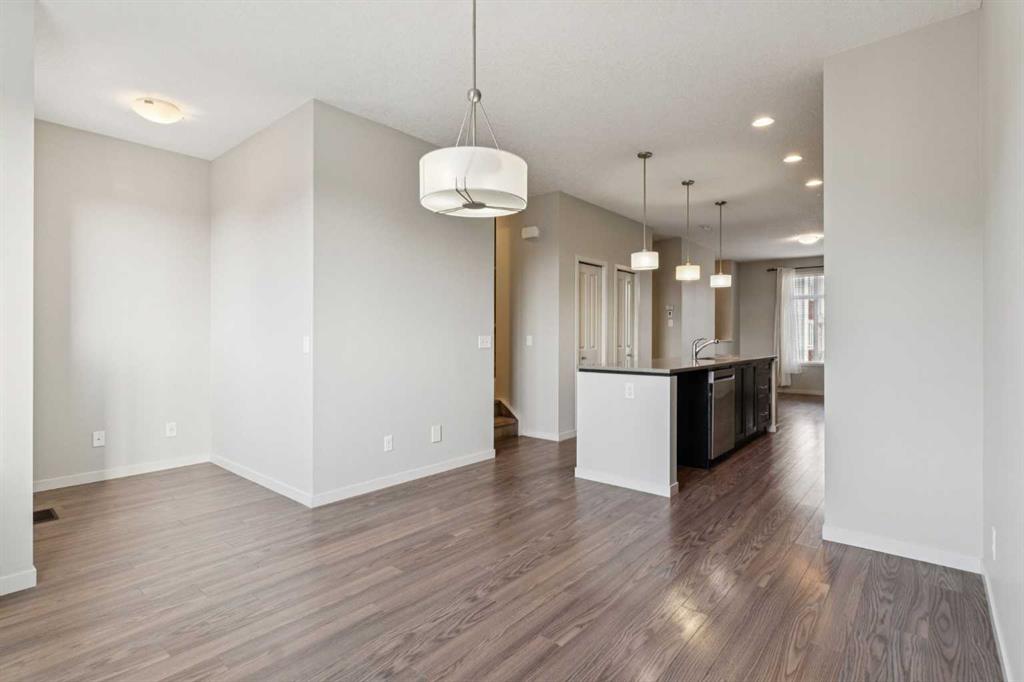 Welcome to this beautiful 3-bedroom, 2.5-bathroom townhome with an attached garage. This bright home features an open-concept main floor with laminate flooring, quartz kitchen countertops, espresso maple cabinetry, a subway tile backsplash, and a large kitchen island accented by stylish pendant lighting. The living room offers plenty of room to relax, while the adjacent dining area includes a versatile flex space—perfect for a home office, reading nook, or hutch. The upper floor has been freshly repainted throughout, giving the bedrooms and hallway a clean, updated feel. The main floor and lower level have also received touch-ups, and the carpets have been washed, ensuring the home feels refreshed and move-in ready. Upstairs, you'll find three comfortable bedrooms, including a primary suite with a walk-in closet and its own private bathroom. The lower level provides generous storage and the potential to develop additional living space if desired. Enjoy the convenience of an attached garage—especially during winter months—plus a driveway for a second vehicle. This well-located townhome is close to parks and playgrounds, schools, shopping, and transit, with quick access to 130th Avenue, Deerfoot Trail, and Stoney Trail. A wonderful opportunity in Copperfield—book your viewing today!