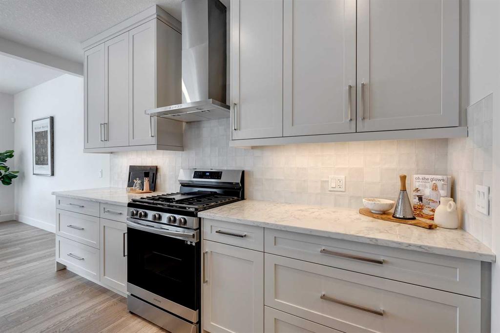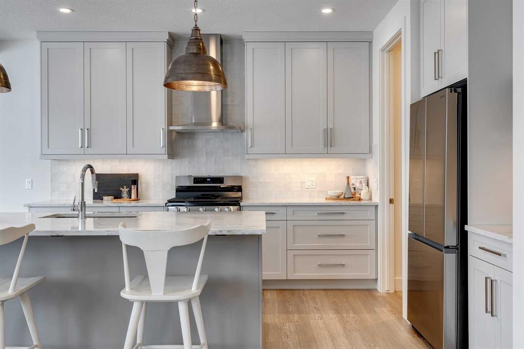 This Gorgeous Home is situated in the community of Rivercrest near schools, parks, sports facility and other amenities. Backing onto a greenspace is a walking path with plenty of trees and you may possibly see some wildlife. Inside starting in the foyer on the main floor, you will notice 9ft walls and towering 8ft doors that grant you access to the mudroom, pantry, kitchen, nook, living room and half bath. The picturesque windows gives so much light that you don’t even need to turn on the lights until dusk. The living room’s focus is a 56” linear gas fireplace with mantle. The spacious designer kitchen includes quartz counters, under cabinet lighting and taller cabinets to ceiling that are equipped with soft close doors and drawers. The Kitchen Island houses a microwave cabinet and dishwasher and is capped off with a 15" overhang quartz counter that includes an undermount graphite sink. This chef’s kitchen is complete with Stainless Steel refrigerator, gas stove, decorative funnel fan, dishwasher and built in microwave with trim kit. On the upper floor you will be greeted by a beautiful bonusroom, also included on the upper floor is a spacious laundry room complete with a window for additional light, cabinet with top mount sink and built on site shelving. Stunning vaulted ceilings add incredible height and an airy feeling in the Primary bedroom and bonusroom. PRIMARY ENSUITE has an executive full tiled shower with rain head, hand shower and bench all enclosed with a 10ml glass pivoting shower door and side panel. The ensuite’s taller vanity cabinet is equipped with plenty of storage space and has double undermount sinks that complimented with quartz. Across from the vanity you will find a stunning oval freestanding soaker tub perfect for the end of day “me time”. The MAIN BATH is finished with a fiberglass deep tub and tiled walls and the vanity is topped with quartz and undermount sink. Janssen Homes is known for their built on site finishing's which include the deacons bench in foyer, solid pantry shelving, lockers in mudroom, closets and built in linen on upper floor hallway which all helps with keeping life organized. Now, for the flooring, on the main area, stairs going up to and in bonsuroom is finished with Luxury Vinyl Plank, which is perfect for those busy homes. There is tile in the laundry room, all baths, surrounding basement wet bar and entrance area in front of walk out patio doors. Tile in the primary and basement bath include programmable in floor heat. There is carpet on upper hallway, bedrooms, closets, recreation room and stairs going down to walk out level. Walk out basement is finished with a wet bar cabinet with sink and topped off with quartz, a recreation, family room, full bath and bedroom. The OVERSIZED double garage will hold two vehicles comfortably and still leave room for storage. All cabinets are underway for installation.
