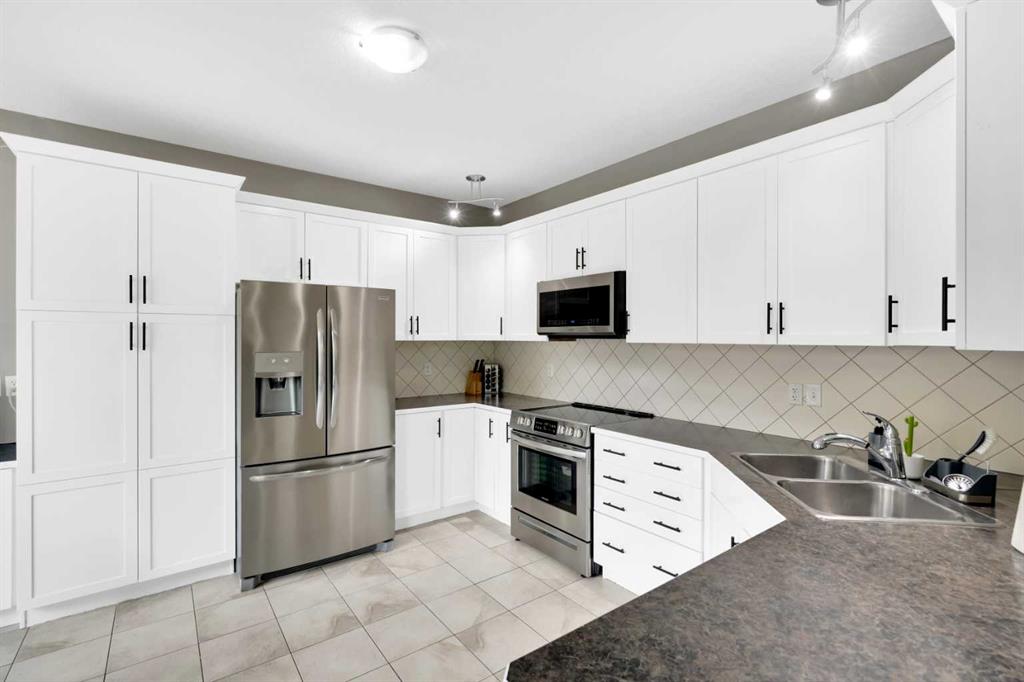 Welcome to this charming and beautifully upgraded 3-bedroom home perfectly situated on a wide, character-filled street in the desirable neighborhood of Windsong. Enjoy the convenience of walking to the brand-new elementary and high schools, as well as the nearby splash park, baseball diamonds, and skateboard park—ideal for an active family lifestyle. Step inside to discover 9-foot ceilings that create an open and airy feel throughout the main floor. The upgraded kitchen is a chef’s delight, featuring elegant maple cabinetry, additional cupboards for ample storage, and a built-in desk space perfect for organizing or homework. New hardwood flooring flows seamlessly into the spacious living room, which boasts a cozy fireplace and large windows that flood the space with natural light. Upstairs offers practical living with a large master bedroom complete with an ensuite, two additional bedrooms, and the convenience of upper-level laundry. The basement is finished with an open recreational room. The insulated and drywalled garage adds extra comfort and functionality. Outside, the landscaped yard provides a private retreat with a fantastic deck enhanced by 8-foot privacy screens. It is perfect for relaxing or entertaining guests. This home combines comfort, convenience, and charm in one of Airdrie’s most popular communities. Don’t miss this exceptional opportunity for your family to settle into a wonderful neighborhood with outstanding amenities just steps away.