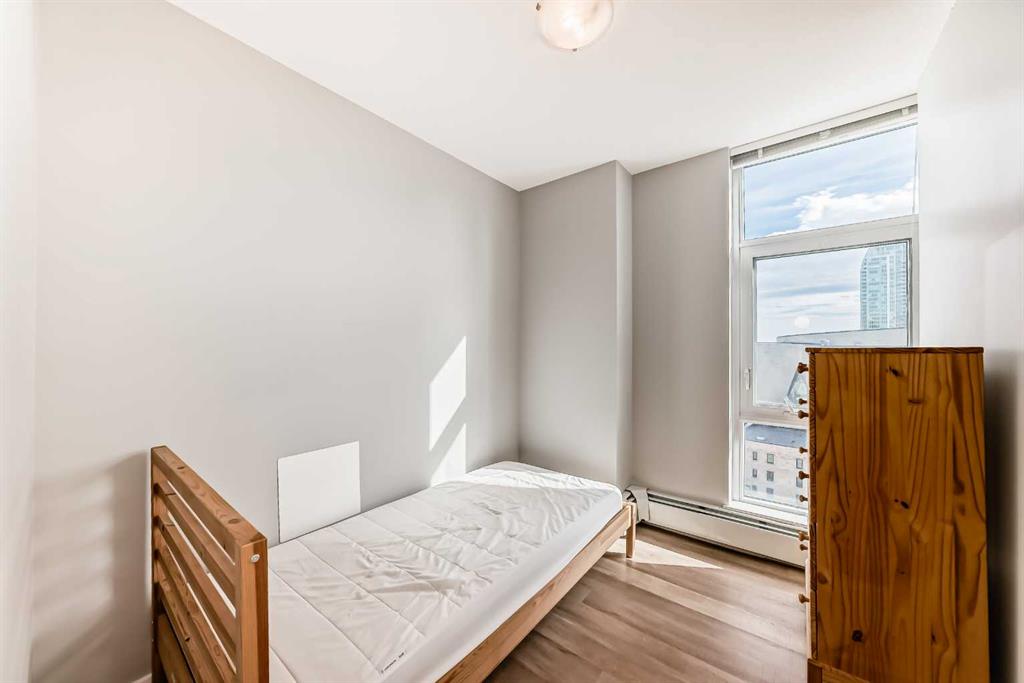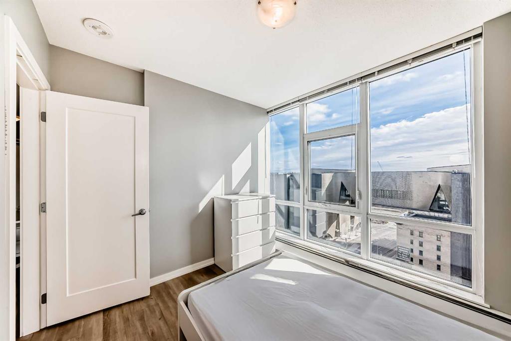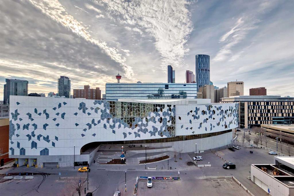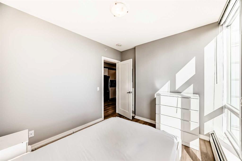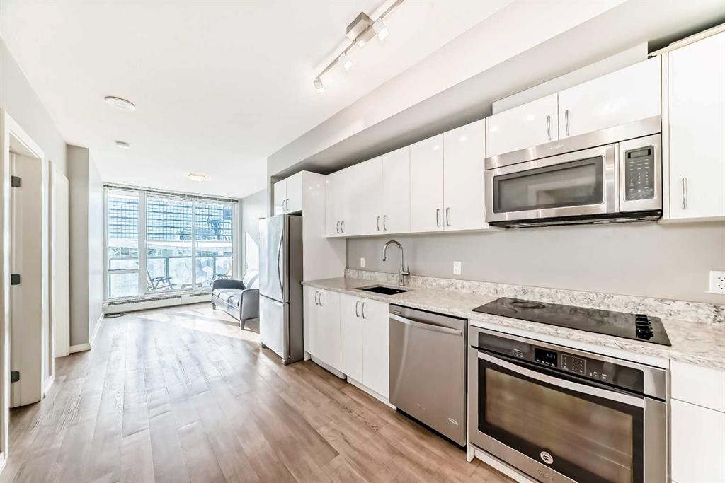 Welcome to this wonderful 2-bedroom, 1-bath apartment nestled in the vibrant inner-city neighborhood of Downtown East Village. This open-concept unit features stylish flooring throughout. The spacious living room extends to an inviting balcony, perfect for relaxation while enjoying breathtaking city and river views. The modern kitchen is equipped with sleek cabinetry and appliances, while two sizable bedrooms are filled with natural light. A well-appointed bathroom completes this functional layout. For added convenience, underground bicycle storage is available. This apartment also offers a range of amenities, including a party room, fitness center, 24-hour security, a rooftop terrace, and more. Ideally located within walking distance of everything East Village has to offer—Central Library, C-Train, Studio Bell & Arts Centre, Bow River Pathways, Real Canadian Superstore, and a variety of restaurants, coffee shops, and bars. Book your private showing today!