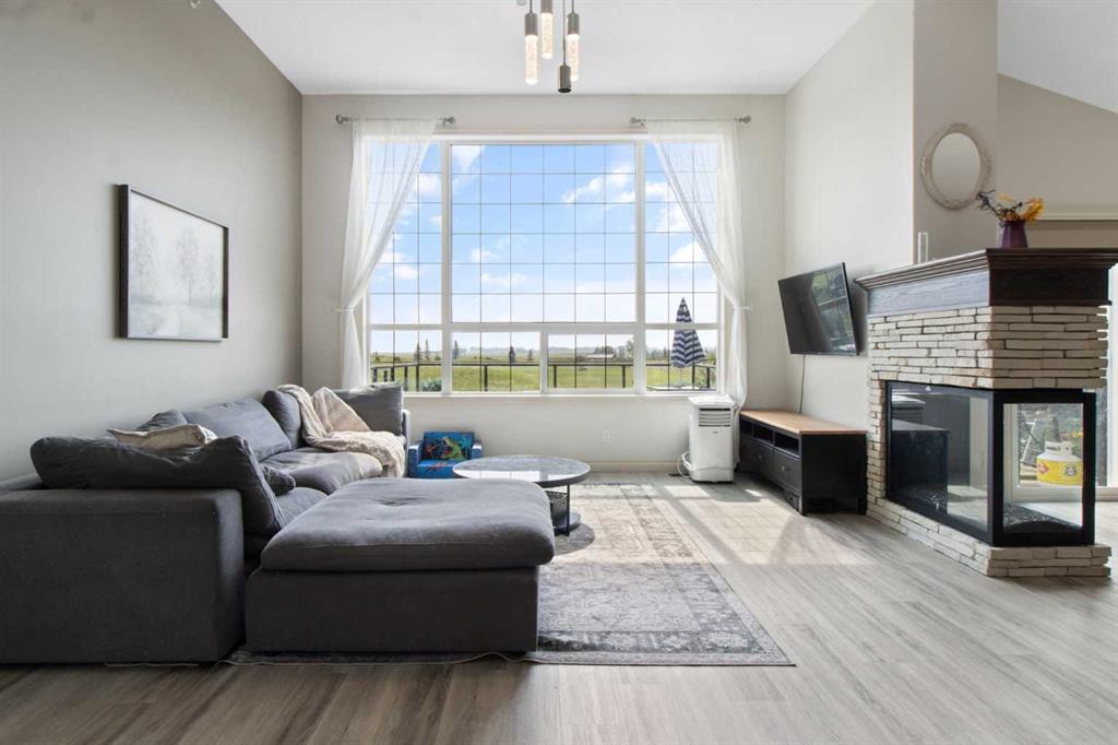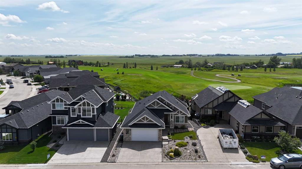 Welcome to this stunning walkout bungalow, located on a quiet cul-de-sac that backs onto the peaceful links of Muirfield Lakes Golf Course. With soaring vaulted ceilings and a wall of windows showcasing breathtaking views. This home blends timeless design with modern functionality. As you enter, you're greeted by a spacious flex room - perfect for a home office or second bedroom. The main floor features an open-concept layout with a chef’s kitchen offering quartz countertops, upgraded cabinetry, a cooktop, wall oven, and a large corner pantry. The kitchen flows seamlessly into the dining and living areas, anchored by a stylish three-sided fireplace and framed by expansive views of the golf course. The primary suite is a luxurious retreat, boasting vaulted ceilings, tranquil views, a spacious walk-in closet, and a spa-inspired ensuite with a double vanity, a soaker tub, and a separate shower. The ensuite is conveniently connected to the laundry room. Step outside to your expanded raised deck- perfect for entertaining or relaxing - where you can enjoy unobstructed views of the golf course and spectacular sunsets. The low -maintenance landscaping includes a fully fenced back yard. The finished walkout basement features a large bedroom, full bathroom, and an inviting rec room that opens to the backyard. Completing this exceptional home is an attached oversized double garage, offering plenty of room for vehicles, storage, and workspace. Located in the golf course community of Lakes of Muirfield, just 20 minutes from Calgary, Airdrie, and Strathmore.
