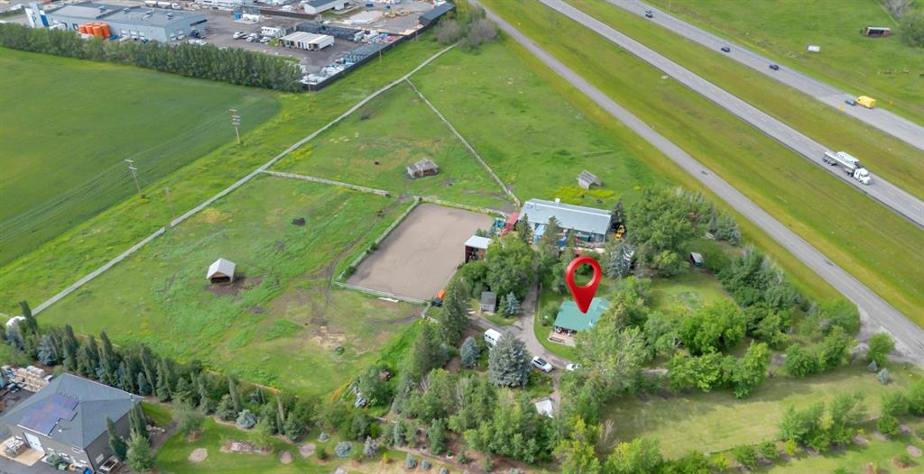 to its appeal, the property includes a cozy 891 sq ft home/office, perfect as a residence, rental, or business HQ. The layout is functional and inviting, offering flexibility for live-work arrangements or administrative space.With plenty of open land, there's also room for horses, storage, or future development—bringing even more versatility to this already outstanding property. Highway 2 frontage, with quick access to Okotoks and Calgary, this unique acreage combines industrial potential with rural tranquility.