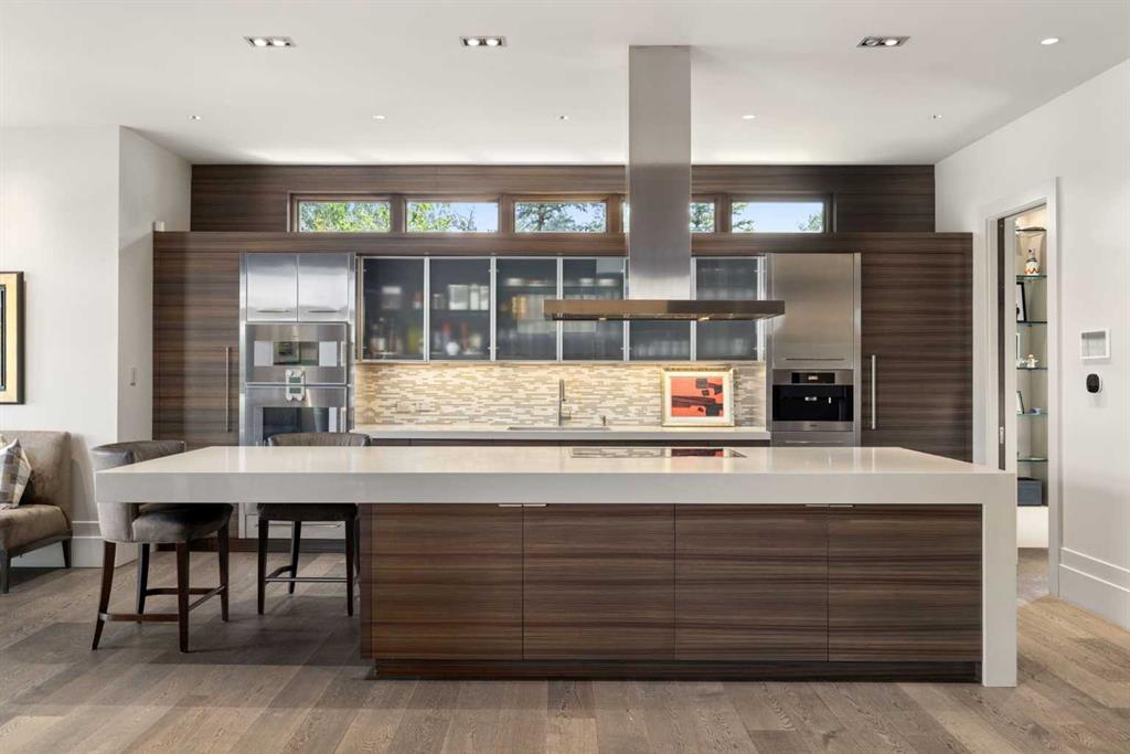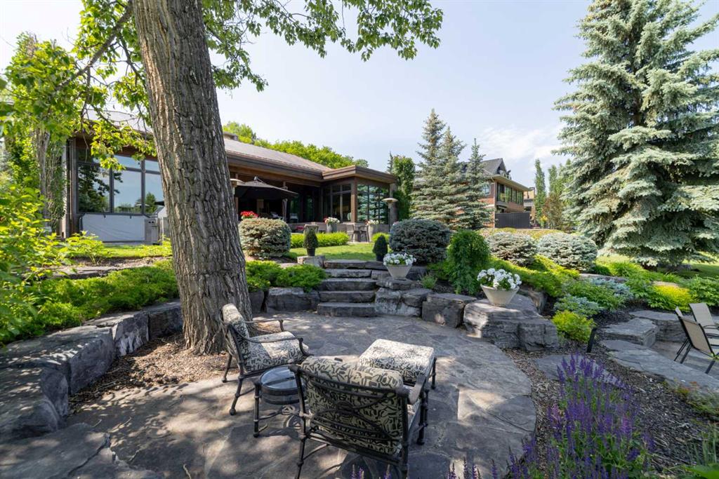 A rare offering where modern architecture & meticulous execution meet on one of Elbow Park’s most prized riverfront lots. Situated on a coveted tree-lined street steps from river pathways, parks, top schools, vibrant restaurants & the downtown core, this is a once-in-a-lifetime opportunity to own one of Calgary’s most architecturally significant homes—a perfect harmony of design, craftsmanship, & location.Thoughtfully designed by award winning architect Mark Burkart and custom built by Mission Custom Homes, this extraordinary residence offers over 6,600 sq ft of refined living space. The design is quietly sophisticated, blending natural materials & light-filled spaces to create a home of remarkable beauty & comfort. The exterior, clad in warm silver-to-charcoal Saint Marc limestone, copper roofing, and Meranti hardwood soffits lends a sense of permanence and quiet strength evoking the spirit of a small modern museum. A front courtyard with a tranquil reflecting pool invites you into the home, while the rear terrace creates a serene outdoor retreat overlooking the Elbow River. Inside, elegant proportions and rich finishes create an atmosphere of understated luxury. Soaring 19' ceilings define the great room, where a monumental limestone fireplace serves as a stunning focal point. A 30' retractable glass wall opens entirely to a heated limestone terrace with phantom screens, infrared heaters, & built-in speakers, perfect for year-round enjoyment and effortless indoor-outdoor living. The chef’s kitchen is both functional & striking, featuring custom tigerwood cabinetry, a cantilevered 13’ Caesarstone island, and top-of-the-line Gaggenau and Miele appliances. A walk-in pantry, wet bar, & seamless flow to the dining area make the space ideal for entertaining or everyday living. The primary suite is a private riverside sanctuary with floor-to-ceiling windows, silk wall coverings, & heated marble floors. Its spa-caliber ensuite offers Bianca Carrera marble, a steam shower, a freestanding tub & a walk-in closet with custom cabinetry. Two exceptional home offices, a beautifully appointed laundry room, & an exquisite powder room complete the main floor. The lower level continues the home’s thoughtful design with a floating oak staircase, spacious family/rec room anchored by a stunning four-sided limestone fireplace, three bedrooms each with a full ensuite, a professional-grade gym, a custom wine room & a 12-foot wet bar. Radiant in-floor heating & elevator access ensure comfort & convenience on every level. Advanced mechanical and smart home systems provide comfort & security, Crestron AV, Lutron lighting, triple-pane Lowen windows, a heated driveway, Viessmann boilers, a water filtration system, & backup generator. Professionally landscaped, the outdoor living spaces include three distinct patio areas: a limestone-encased hot tub, a rundle stone firepit patio surrounded by lush perennial gardens & built-in BBQ area. More than a home, this residence is about a lifestyle.