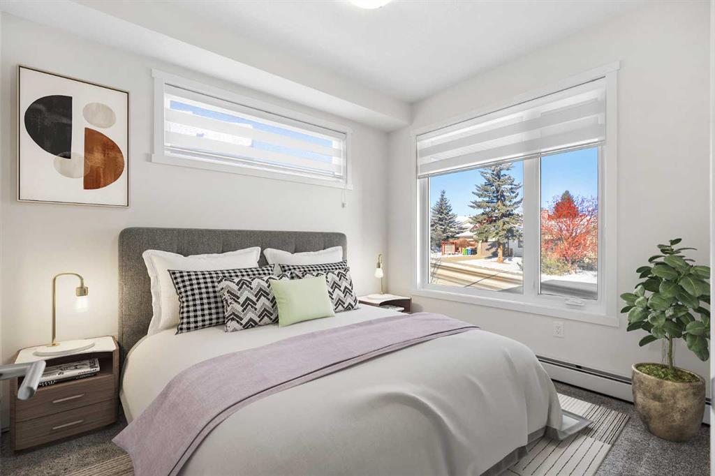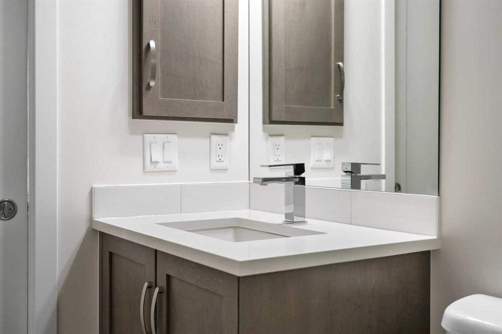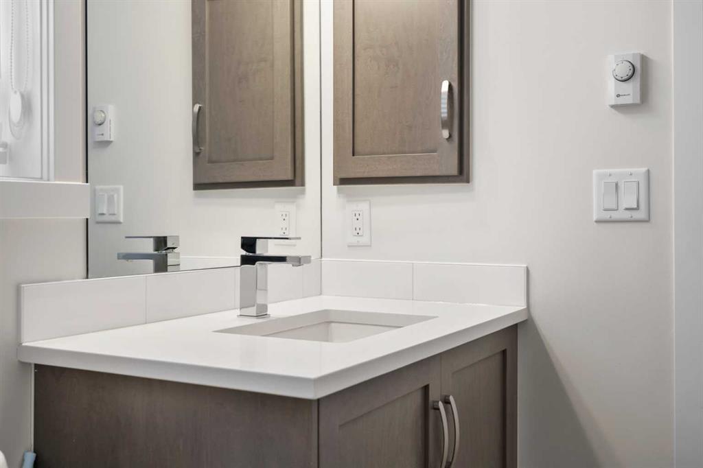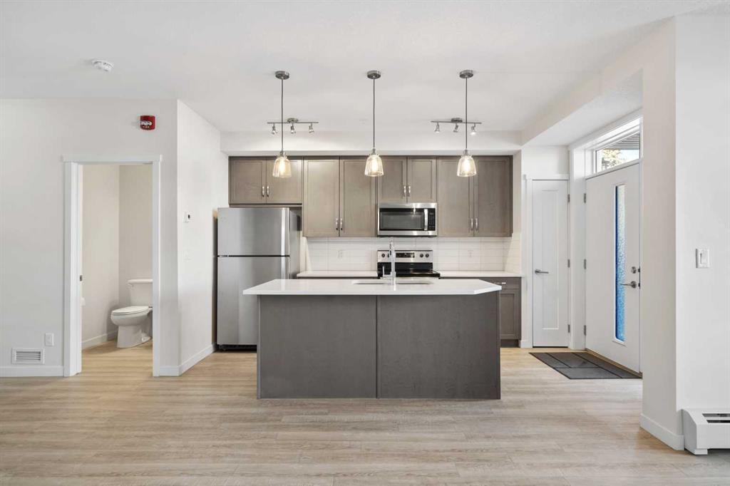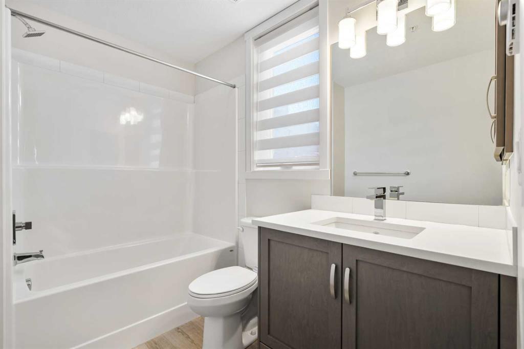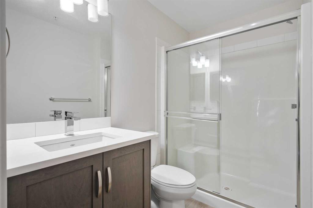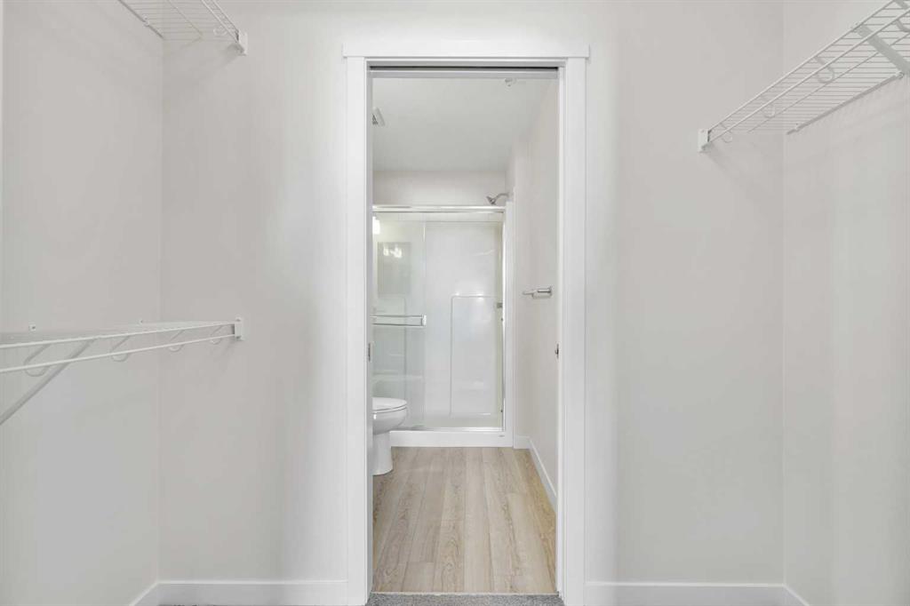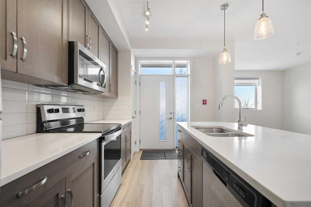 Welcome to Fish Creek Exchange in the serene Shawnee Park community! This stunning two-story residence offers over 1,200 sqft of meticulously designed living space, blending modern elegance with everyday functionality. Enter your private haven through a dedicated patio entryway that opens onto a peaceful north-facing patio, perfect for unwinding. The main floor showcases an open-concept design with impeccable finishes, including a sleek modern kitchen adorned with quartz countertops, premium stainless steel appliances, and chic wide-plank laminate flooring. A convenient 2-piece guest bathroom and a separate laundry room complete this level. Upstairs, you’ll find two spacious bedrooms, each with its own walk-through closet leading to a luxurious ensuite. The primary suite features a sophisticated 3-piece ensuite, while the second bedroom enjoys a 4-piece ensuite. An additional den/storage area on this floor offers the perfect space for a home office or creative retreat. Enjoy the convenience of titled parking and titled storage, along with a prime location just moments from the natural beauty of Fish Creek Park. Close to public transit, parks, shopping, dining, and top-tier schools, this residence delivers the perfect balance of tranquility and urban living. Your dream home awaits!