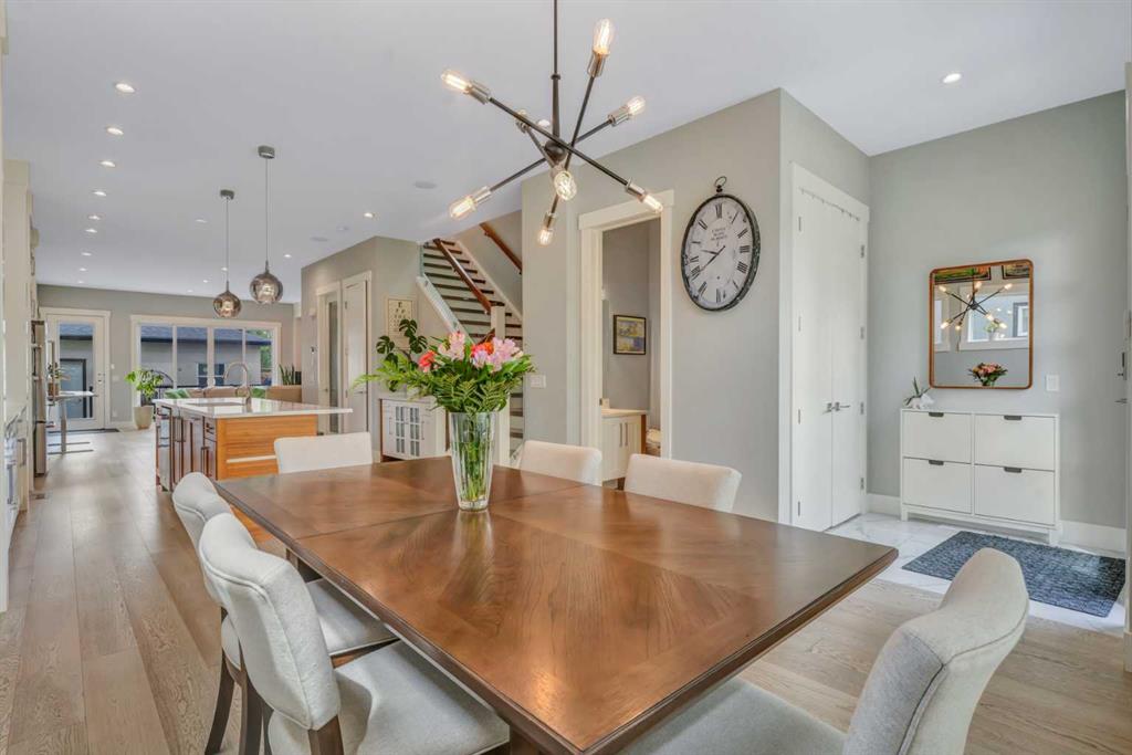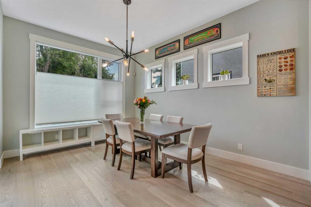 Welcome to 420 14 Avenue NE, an impeccably designed detached infill located on a quiet, tree-lined street in the heart of Renfrew, one of Calgary’s most sought-after inner-city communities. Boasting 3,100 sqft of luxuriously finished living space, this beautifully appointed 4 bedroom, 3.5 bathroom home combines elegant finishes with functional family-friendly design. The main floor features soaring 10’ ceilings, engineered hardwood flooring, custom lighting, and an open-concept layout ideal for entertaining. The chef-inspired kitchen is the centerpiece, complete with quartz countertops, a large island with eating bar, stainless steel appliances, walk-in pantry, and built-in buffet. A spacious living room showcases a floor-to-ceiling tile fireplace flanked by custom built-ins, and a formal dining area and tech center make daily life seamless.