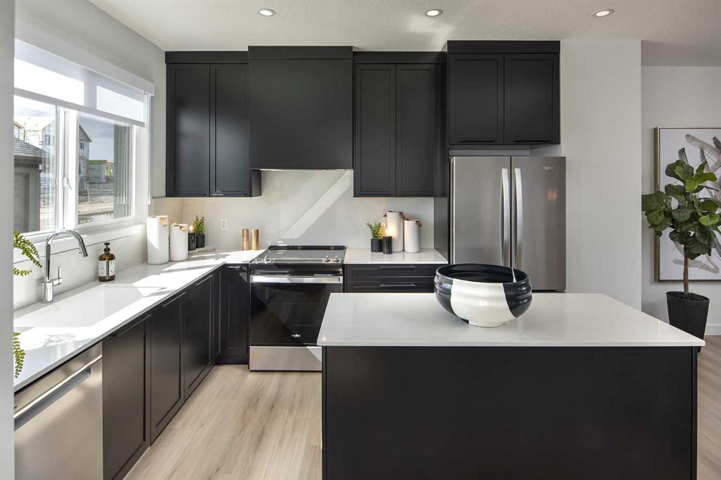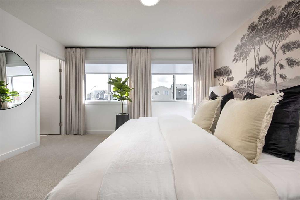 **BEAUTIFUL NEW SHOW HOME FOR LEASE BACK**INCOME GENERATING**CONVENIENT SIDE ENTRY**Located in Southeast Calgary, Heartwood blends modern living with natural beauty and thoughtful planning. Get ready to be a part of a vibrant, growing community built for today and tomorrow. There will include 1 future school site, 3 planned parks and green spaces, 1 wetland and pond area and 4 acres of planned commercial retail. From peaceful wetlands to open green spaces, Heartwood offers residents the chance to connect with nature right outside their door. Parks, paths and natural areas are designed to enhance everyday living-whether it's morning walks, weekend picnics or evening strolls. Just imagine yourself living in Jayman BUILT'S brand new floorplan - The ASPEN. Featuring a professionally designed colour palette, you are invited in to explore over 1500+sqft of nature inspired design. Stepping into the home you are given a wonderful visual from front to back with an expansive site line to maximize every inch. Okanagan Pine Hills Luxury Vinyl Plank flooring graces the man floor offering a seamless transition form space to space. The Alpine Stone elevation compliments the interior selections as you tour the designated dining room into the bright rear kitchen with central island. Sleek stainless steel appliances elevate the space with a Whirlpool refrigerator with icemaker and internal water, electric slide in smooth top range, Panasonic microwave with trim kit and Broan power pack built-in cabinet hood fan. Stunning quartz counter tops, Blanco silgranite undermount sink, soft close hinges with 48" uppers and 2 1/2 inch submoulding reflect nicely with the selected EXTRA Fit & Finish. A functional pantry and powder room complete this level with a quaint mud room near the back of the home that opens up to your 10x10 deck. Explore the upper level that features three sizeable bedrooms with the Primary including a generous private 3pc en suite with sliding glass door shower and a spacious walk-in closet. You will also discover a convenient 2nd floor laundry and full bath for family and guests on this level. The lower level boasts a raised 9ft basement ceiling height and 3-pc rough-in for plumbing while the exterior of this home features durable Front Hardie Board exterior and BTRboard Exterior Wall System. Jayman's standard inclusions feature their Core Performance with 10 Solar Panels, BuiltGreen Canada standard, with an EnerGuide Rating, UV-C Ultraviolet Light Purification System, High Efficiency Furnace with Merv 13 Filters & HRV unit, Navien Tankless Hot Water Heater, Triple Pane Windows and Smart Home Technology Solutions! All this with a DOUBLE DETACHED garage to complete the package. Earn money every month with the Showhome Leaseback Program! Designer upgrades also include wallpaper, window coverings, air conditioning and landscaping.