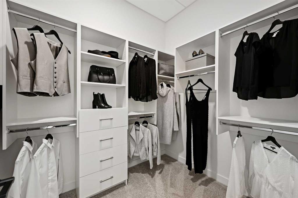 The Streams of Lake Mahogany present an elevated single-level lifestyle in our stunning Reflection Estate homes situated on Lake Side on Mahogany Lake. Selected carefully from the best-selling renowned Westman Village Community, you will discover THE BROOK, a home created for the most discerning buyer, offering a curated space to enjoy and appreciate the hand-selected luxury of a resort-style feeling while providing you a maintenance-free opportunity to lock and leave. Step into an expansive 1700+ builders sq ft stunning home with 12-foot ceiling heights with views of Lake Mahogany featuring a thoughtfully designed open floor plan, inviting an abundance of natural daylight with soaring ceilings and oversized windows. The centralized living area, ideal for entertaining, offers a Built-in KitchenAid sleek stainless steel package with French Door Refrigerator and internal ice make and water dispenser, a 36-inch 5 burner gas cooktop, a dishwasher with a stainless steel interior, and a 30-inch wall oven with convection microwave; all nicely complimented by the Frappe Elevated Color Palette. The elevated package includes rich two tone cabinets in the kitchen with oversized hardware; glossy herring bone tile at the kitchen backsplash; soft close cabinetry with ceiling height uppers, square front hood fan shroud, sil granite undermount sink, upgraded pantry, under cabinet lighting and a stylish modern light package in a beautiful finish to match. All are highlighted with bright white Quartz countertops. You will enjoy two bedrooms on either side, nicely framing in the central living area featuring a floor to ceiling tiled feature fireplace, with the Primary Suite featuring a spacious 5-piece oasis-like ensuite with dual vanities, a large soaker tub, a stand-alone shower, and a generous walk-in closet with built-ins. The Primary Suite and main living area step out to a 54ft terrace with beautiful views. Yours to soak in every single day. To complete the package, you have a sizeable foyer, and the spacious laundry room is adjacent to the entry of your private double-attached heated garage with a full-width driveway. Jayman's standard inclusions feature their trademark Core Performance, which includes Solar Panels, Built Green Canada Standard with an Energuide rating, UVC Ultraviolet light air purification system, high-efficiency heat pump for air conditioning, forced air fan coil hydronic heating system, active heat recovery ventilator, Navien-brand tankless hot water heater, triple pane windows and smart home technology solutions. Enjoy Calgary’s largest lake, with 21 more acres of beach area than any other community. Life ready for the way you live!