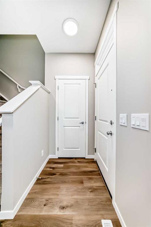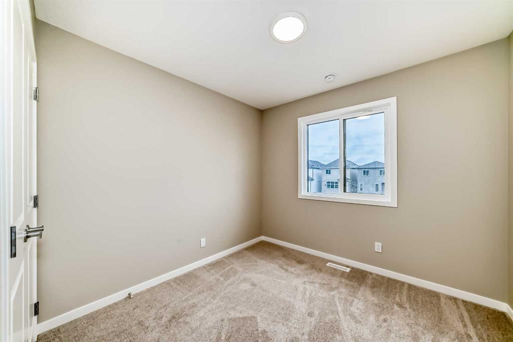 Welcome to the Cari, a beautifully designed home where modern style meets everyday functionality. With 1,264 sq. ft. of thoughtfully planned living space, this 3-bedroom, 2.5-bathroom residence is crafted to elevate your lifestyle while offering room to grow. From the moment you arrive, the curb appeal is undeniable with a landscaped front yard that sets the tone for the elegance inside. Step through the front door and into the bright and open main level, where luxury vinyl plank flooring seamlessly connects the living, dining, and kitchen areas. The heart of the home is the stunning L-shaped kitchen, featuring sleek two-tone cabinetry, gleaming quartz countertops, a central island, and stainless steel appliances that make cooking and entertaining both effortless and enjoyable. The open-concept design ensures that whether you’re hosting family dinners or relaxing with friends, every space feels welcoming and connected. Upstairs, the layout is just as impressive. The serene primary retreat offers the perfect escape, complete with a spa-inspired ensuite finished with quartz countertops and modern fixtures. Two additional generously sized bedrooms, along with a stylish full bathroom, provide plenty of space for family or guests. Convenience continues with an upper-level laundry room, designed with luxury vinyl tile flooring for both style and durability. The lower level holds endless potential with a 9’ foundation height and thoughtful rough-ins for a 3-piece bathroom and a wet bar sink. A separate side entrance adds flexibility for a future basement suite (A secondary suite would be subject to approval and permitting by the city/municipality). Every detail of the Cari has been carefully considered, from the knockdown ceiling texture to the quality finishes throughout. This is more than a home—it’s a place designed to adapt to your lifestyle and grow with you. Located in one of Calgary’s newest and most exciting communities, Hotchkiss is a neighborhood where modern living meets natural beauty. Nestled in the southeast, Hotchkiss offers a perfect balance of peaceful surroundings and urban convenience. Residents enjoy easy access to scenic pathways, parks, and green spaces, creating a community where outdoor living thrives. Families will appreciate the close proximity to schools, recreational amenities, and shopping, while commuters benefit from convenient connections to major roadways, making every part of the city accessible. With its vision for thoughtful planning and vibrant streetscapes, Hotchkiss is more than a place to live—it’s a place to belong. The Cari is not just a home; it’s an opportunity to enjoy stylish comfort in a thriving, growing community