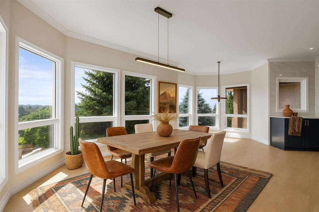 Two brick, wood-burning fireplaces anchor the home, casting a golden warmth that feels unmistakably “Alberta”—whether it’s a winter evening curled up with a glass of wine or a spring morning with coffee and the paper.
