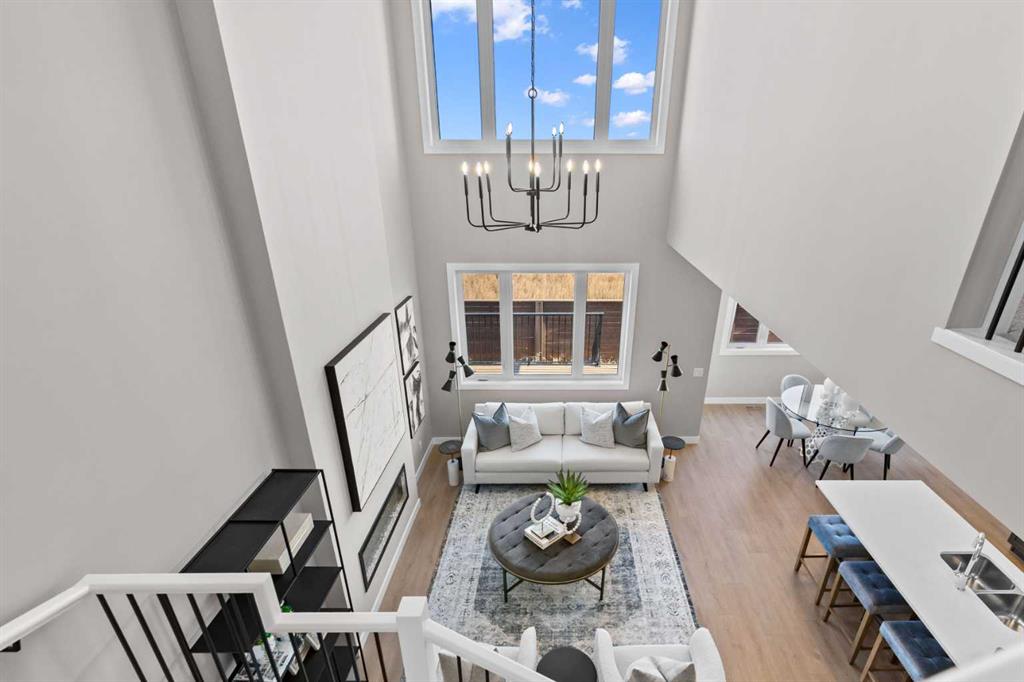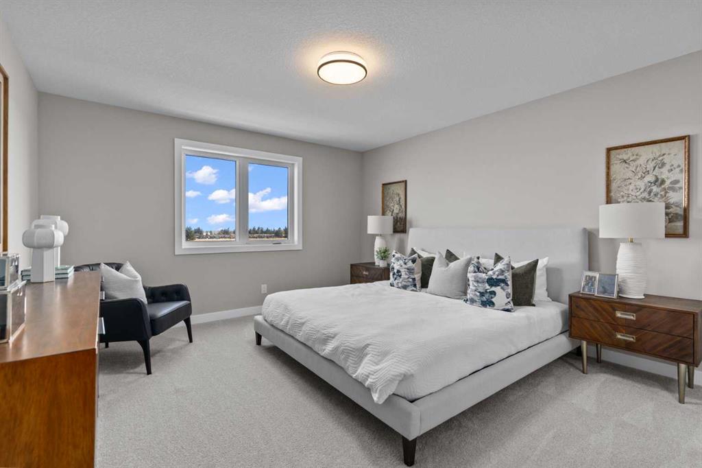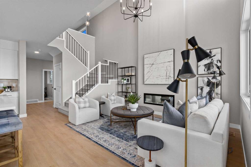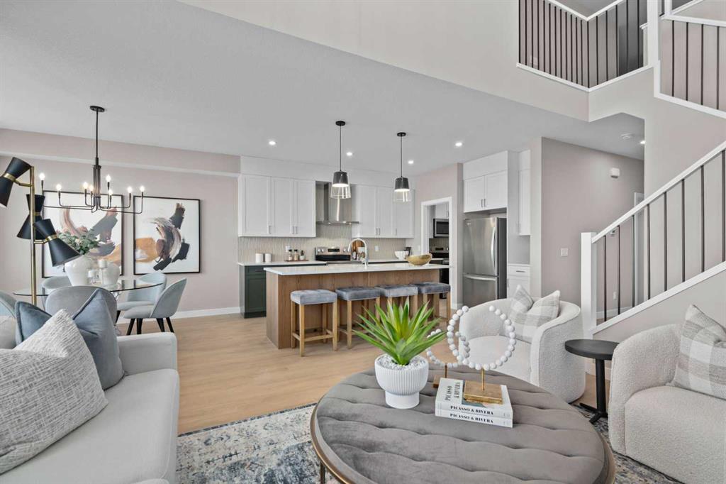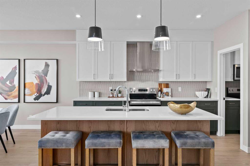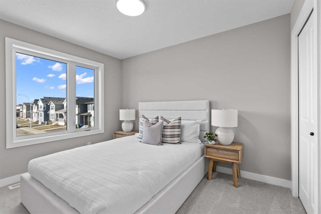 IMMEDIATE POSSESSION | 2,277 SQ.FT. | 5-BED | 3-BATH | MAIN FLOOR BED + BATH | OPEN TO ABOVE | SPICE KITCHEN | SEPARATE SIDE ENTRANCE | DECK | FRONT LANDSCAPING | HARDIE BOARD SIDING | This stunning home by Crystal Creek Homes BACKS ONTO GREENSPACE and is designed for everyday family life. The MAIN FLOOR has a BEDROOM and FULL BATH, perfect for grandparents or anyone who prefers to avoid stairs. Or use it as a home office. The standout kitchen features full-height cabinetry, quartz counters, and a SPICE KITCHEN to keep fragrant cooking contained. An open-to-above great room with large windows fills the space with light, and the dining area opens onto a rear deck that’s perfect for summer barbecues and morning coffee. Upstairs there are four bedrooms, including a spacious primary suite, a bonus room, a 5-piece bathroom, and convenient laundry. The 9' BASEMENT and separate SIDE ENTRANCE provides future suite potential (subject to approval and permitting by the City). Hardie board siding adds durability, and a full builder warranty is included for peace of mind. Belvedere offers quick access to Stoney Trail, East Hills shopping, and future parks and schools. Book your showing today!