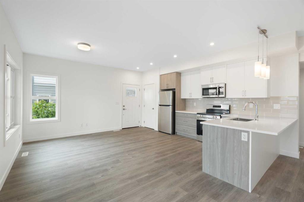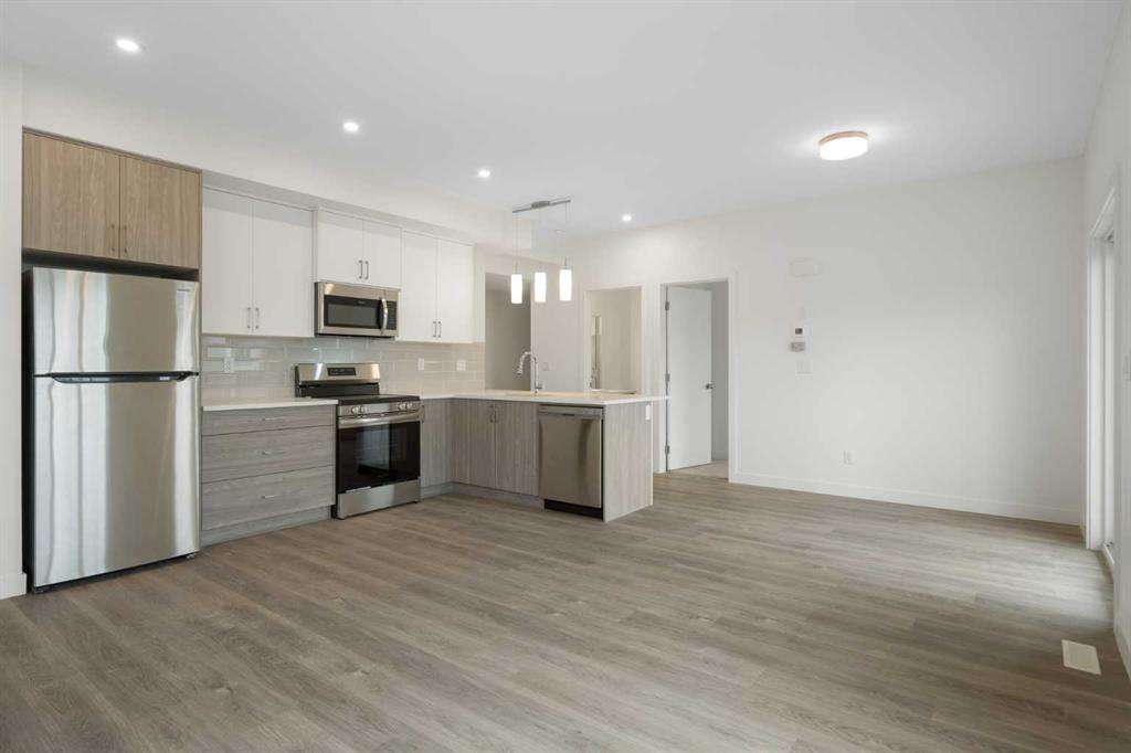 ** Immediate Possession** Nearly 1500 sq ft developed! Welcome to this immaculate move in ready townhome in the highly desirable community of Aspen Springs, a master-planned neighborhood by renowned builder, Slokker Homes. This stunning bungalow offers a bright and spacious open-concept layout, with large windows that flood the living and dining areas with natural light. The contemporary kitchen is a chef's dream, featuring sleek stainless steel appliances, beautiful quartz countertops, and modern cabinetry. High-end LVP flooring flows throughout the main living spaces, while soft carpeting in the bedrooms provides a cozy retreat. The primary bedroom is a generous sanctuary with its own stand-up shower ensuite. The fully finished basement is a valuable addition, offering a large family room, full bathroom and two more bedrooms for added flexibility. Aspen Springs is a highly sought-after location, praised for its excellent access to top-rated schools, including both public and private options like Webber Academy and Rundle College. Enjoy the convenience of being just minutes from premium shopping and dining at Aspen Landing and West 85th, while still feeling connected to nature with nearby parks and walking paths. An attached garage and an additional driveway space make parking effortless. This is more than just a home; it's a lifestyle of comfort and convenience in one of Calgary's premier west-side communities.