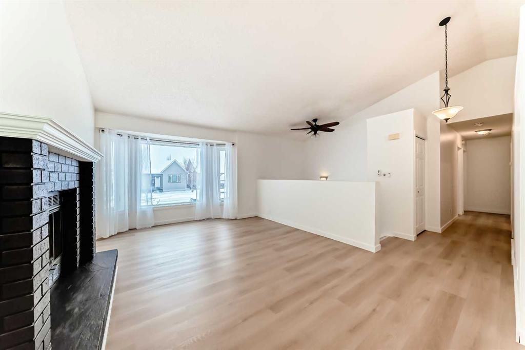 Inside, the main level is bright and airy with vaulted ceilings, a wood-burning fireplace, all-new flooring and fresh paint, and three bedrooms—including a primary suite with ensuite bath.