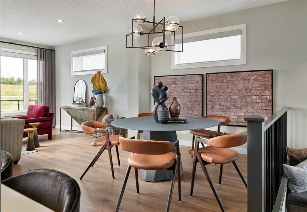 Nestled in the beautiful community of Pine Creek, this brand new four-level split, The Hudson, built by Brookfield Residential, features nearly 2,200 ft2 of developed living space + an undeveloped basement that awaits your imagination and design touches. Featuring 2 living spaces, a home office/flex space, 3 bedrooms, 2.5 bathrooms and plenty of living space, this beautiful family home provides the nostalgia of a four-level-split with the openness you desire in a modern home. Situated on a sunny lot with an ideal south-facing backyard, this home is beautiful both inside and out, giving you plenty of natural light all year long and optimal sunshine in the backyard throughout the summer. The bright and open main level features a gourmet kitchen complete with built-in chimney hood fan, built-in wall oven & microwave, and a gas cooktop. The kitchen is complete with a large walk-in pantry, providing ample storage. The central kitchen overlooks the living and dining areas - making it the perfect entertainment space. The main level is complete with a large flex room with doors, ideal for a home office space, and lastly a large mud room and 2 pc powder room round out the main level. Up a half set of stairs is the expansive bonus room with vaulted ceilings and access to the private balcony off the front of the home. With the main living area just a few steps down, the open concept allows for separation without compromising the open feel and making it feel closed off. Up another half set of stairs, you'll find the primary bedroom complete with a walk-in closet and 5pc ensuite bathroom including a soaker tub, walk-in shower, private water closet and dual sinks. The upper level is complete with two additional bedrooms, a convenient 5 pc main bathroom with dual sinks and a full laundry room. Situated on an incredible lot and featuring beautiful design throughout, this brand new home includes full builder warranty as well as 10 year Alberta New Home Warranty with countless amenities nearby! *Note: Photos are from a previous show home and are not an exact representation of the property for sale.