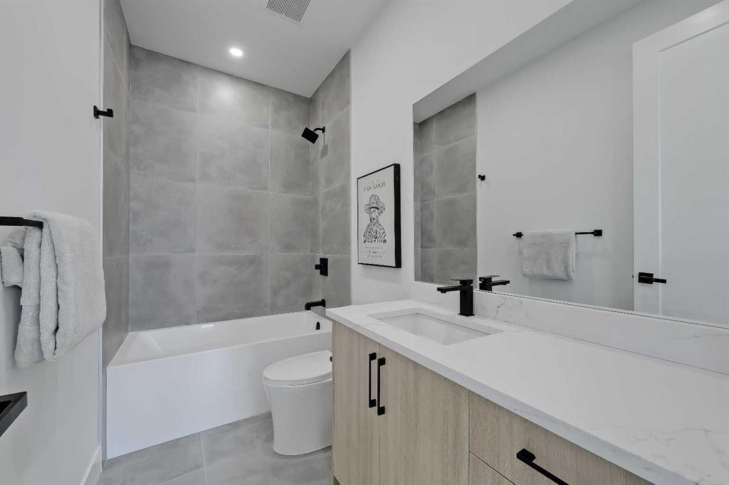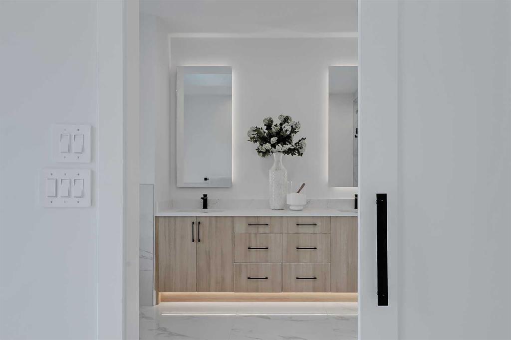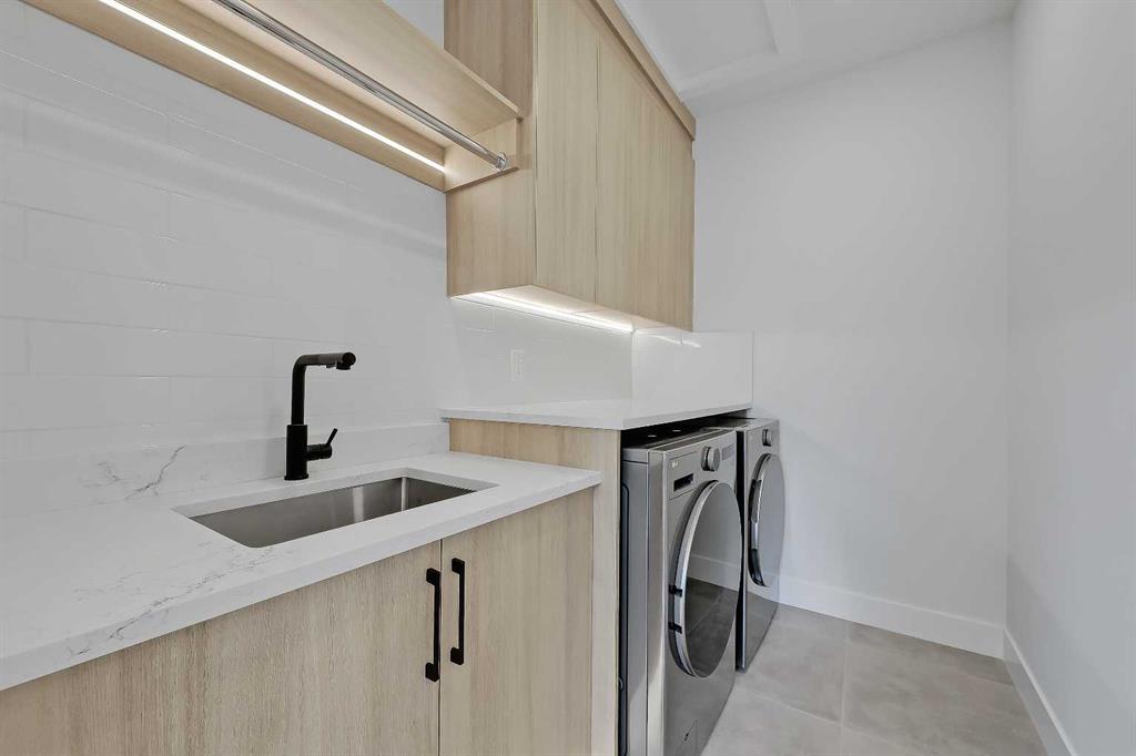 This home also features a 2-bedroom legal secondary suite (pending final inspection), offering its own private side entrance for added privacy and independence. Designed with the same elevated finishings as the main level, the suite includes a stylish full kitchen, open-concept living and dining area, a sleek 4-piece bathroom, and dedicated laundry with a built-in sink. Whether you're accommodating extended family, welcoming long-term guests, or exploring rental opportunities, this flexible space adds both function and future value.